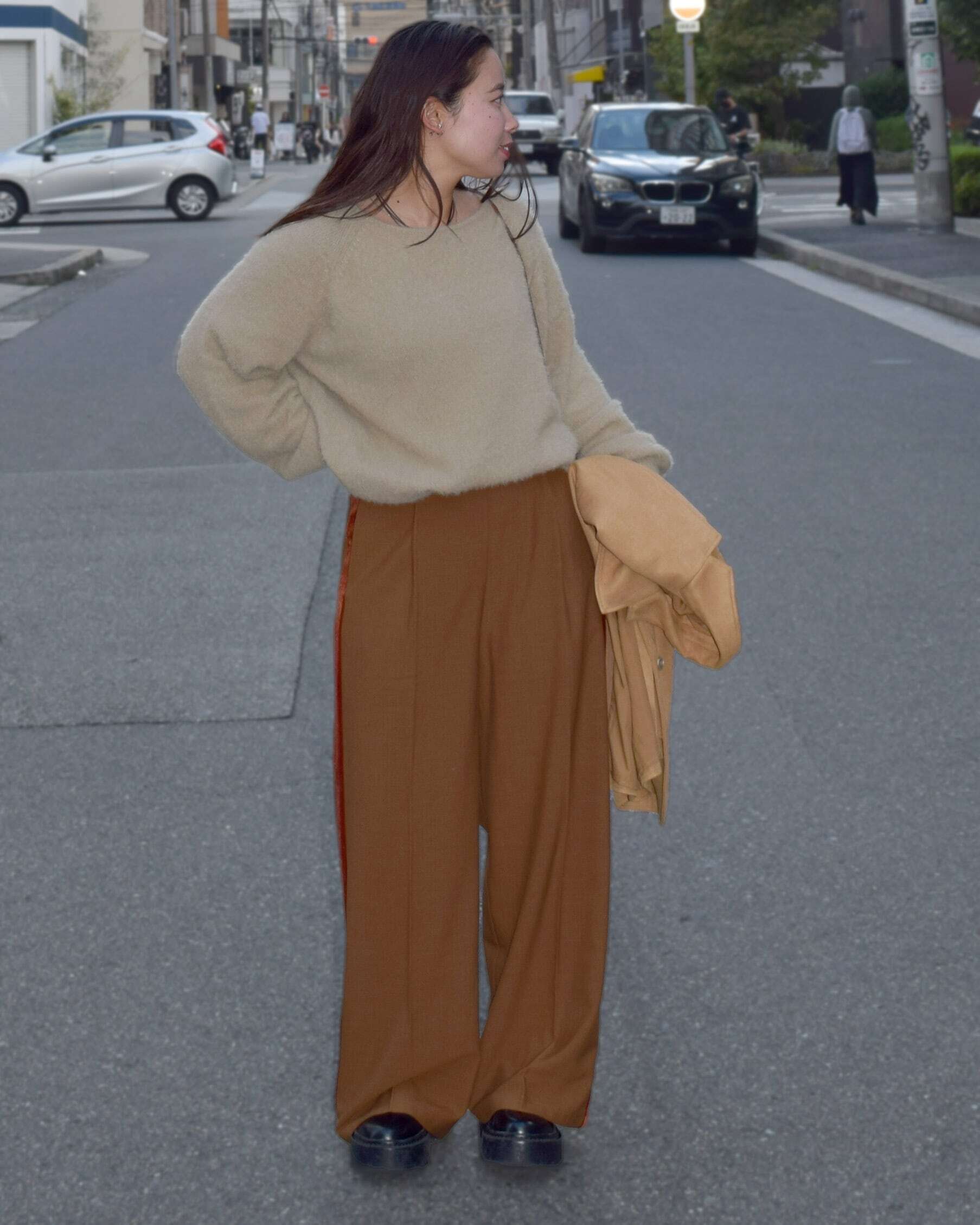 ゆとりのあるシルエットで、リラックス感がありつつも女性らしい雰囲気を演出します。