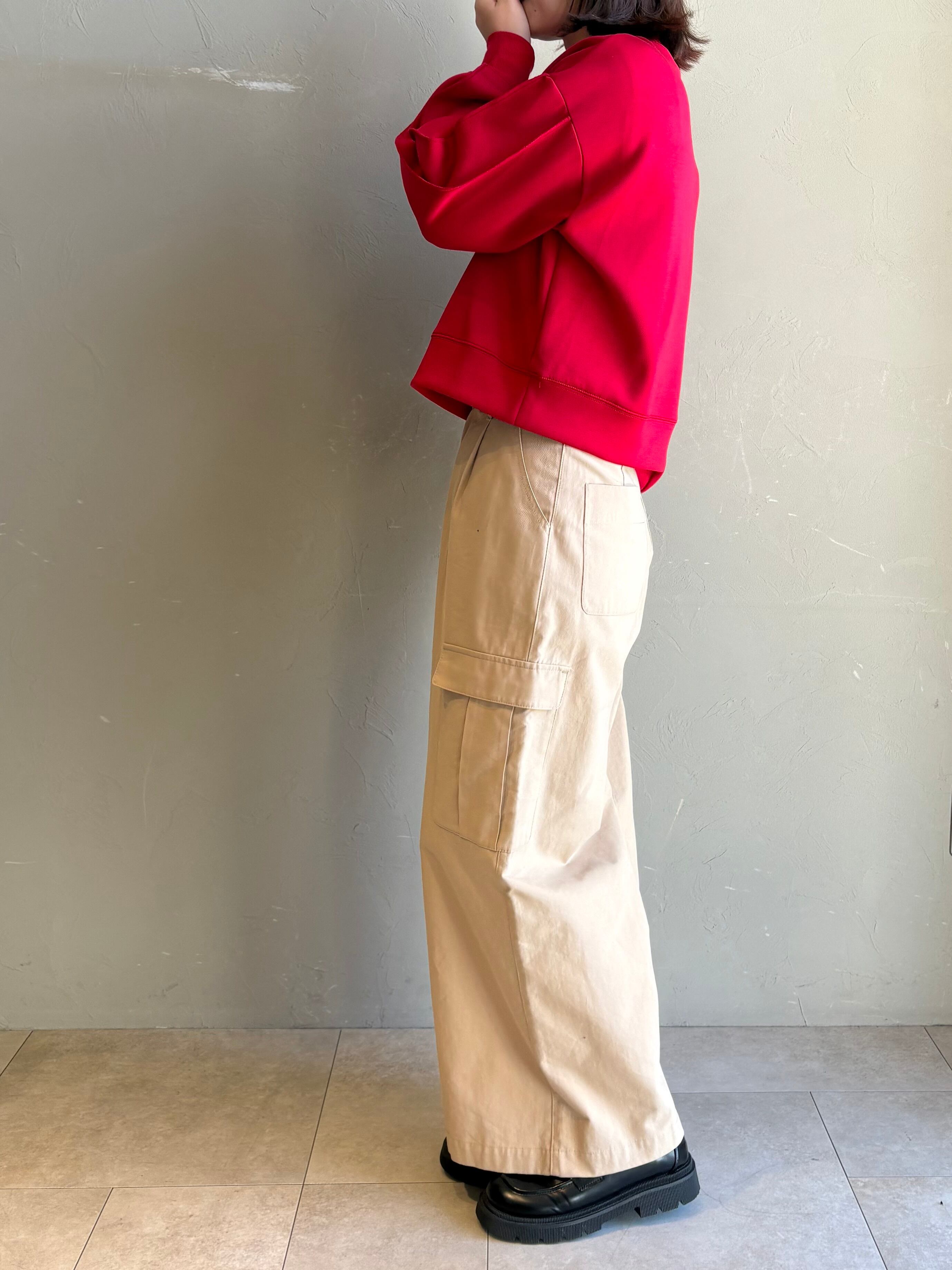 コンパクトな丈なので、スカート、ワイドパンツなどのボリュームのあるボトムに合わせるのがおすすめ!