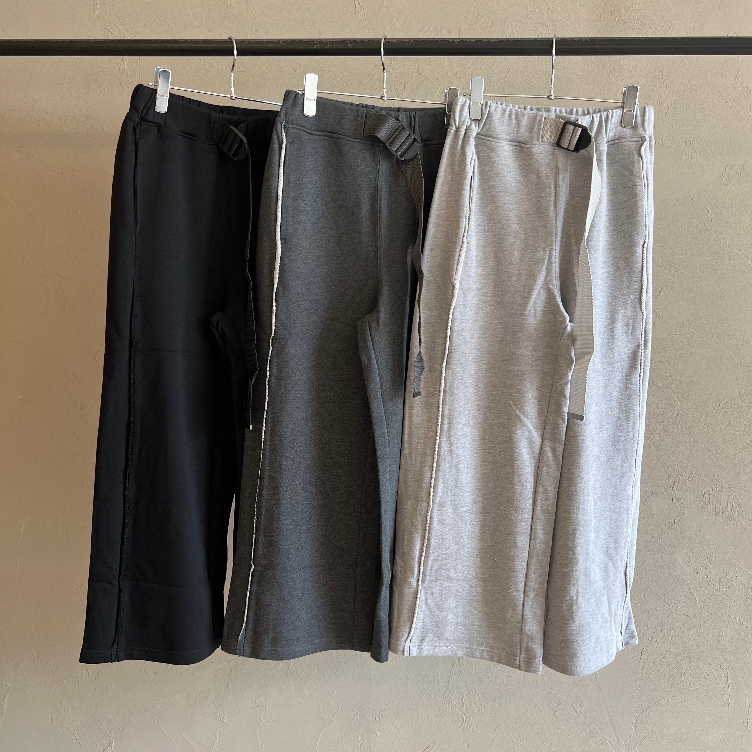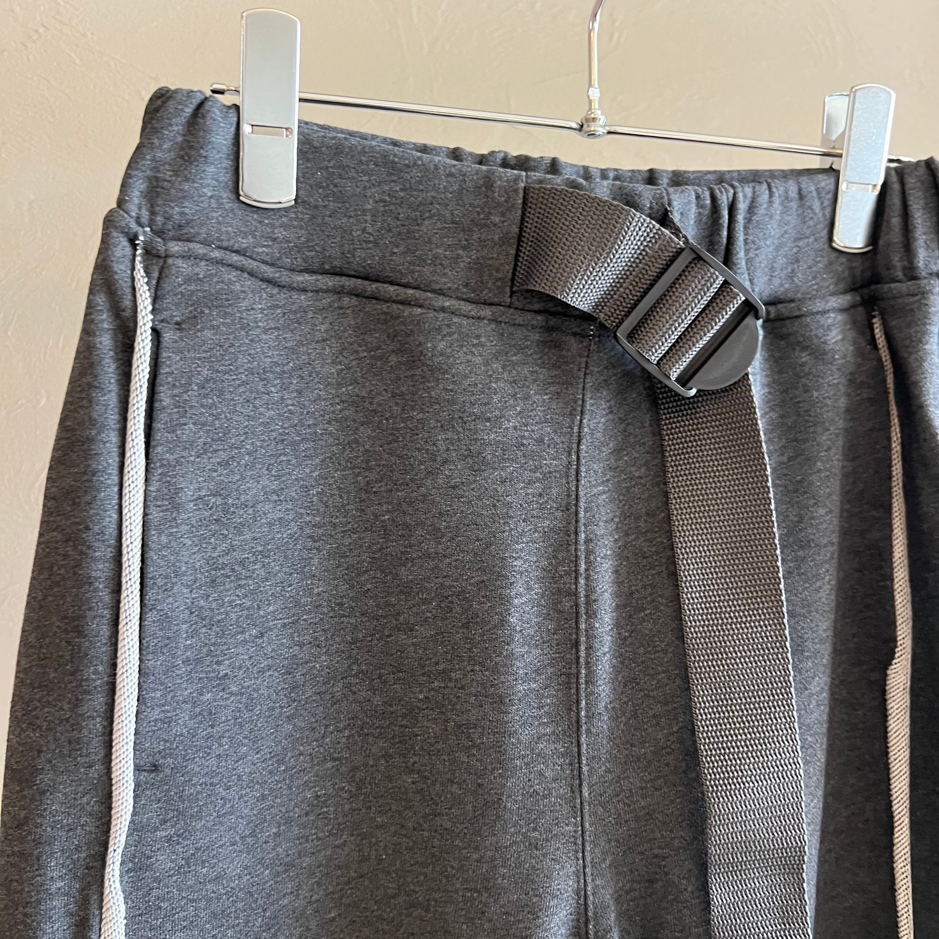 柔らかく伸びのあるスウェット地に、ベルト×ゴム仕様で快適フィット。