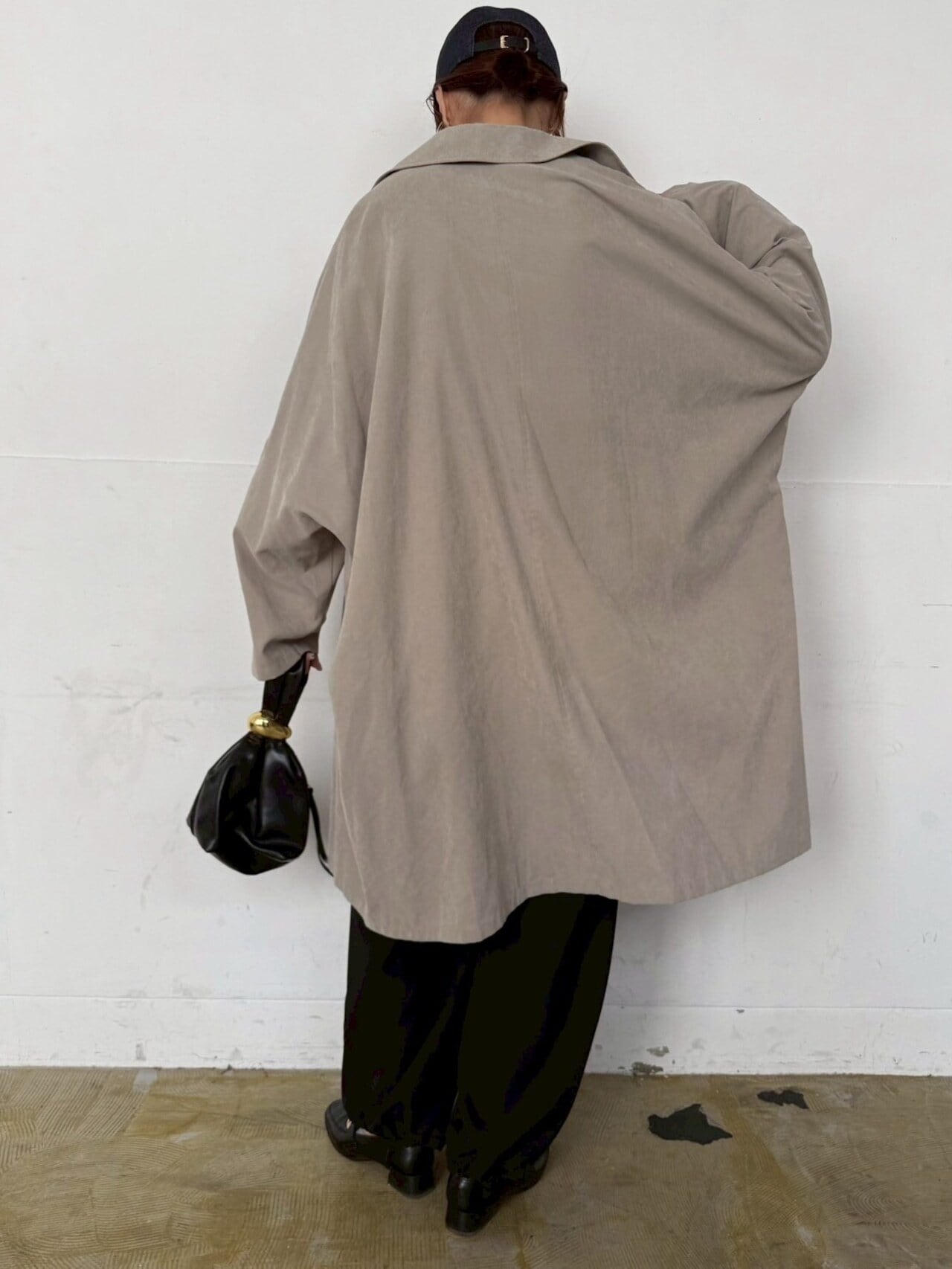 オーバーサイズデザインなので厚手ニットやジャケットの上から着ても、着ぶくれして見せずスッキリとした印象に。