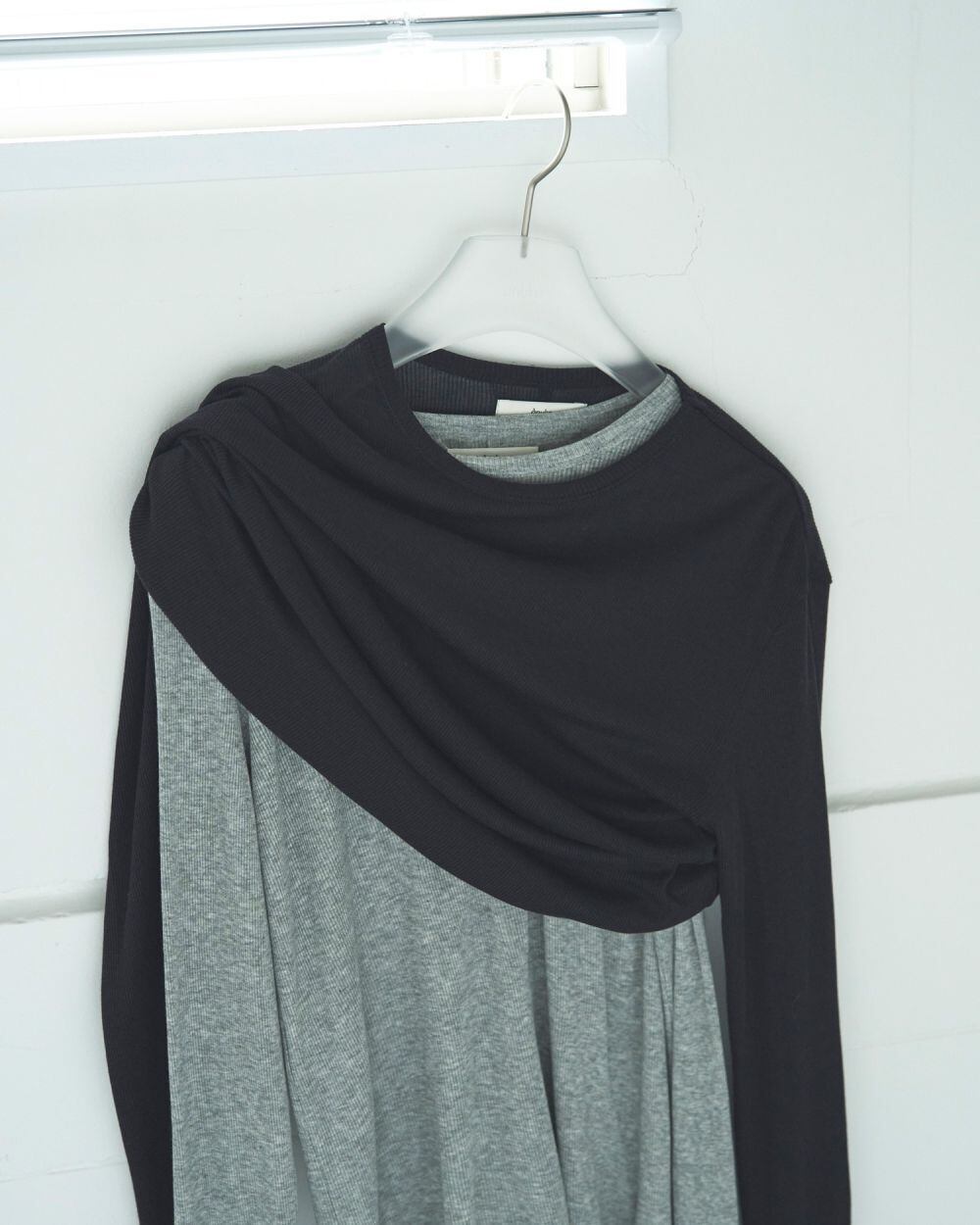 薄手の透け感のあるリブ素材を使用したロングTシャツ。カラーの異なる2枚をレイヤードしたセットアイテムです。主張し過ぎず程良くニュアンスを出してくれる細かなリブ目で、幅広いアイテムと合わせやすい一枚。柔らかな着心地も魅力。コーディネートのアクセントになるカラーと着回しやすいベーシックカラーの2枚を重ね、それぞれ単品使いにもおすすめです。