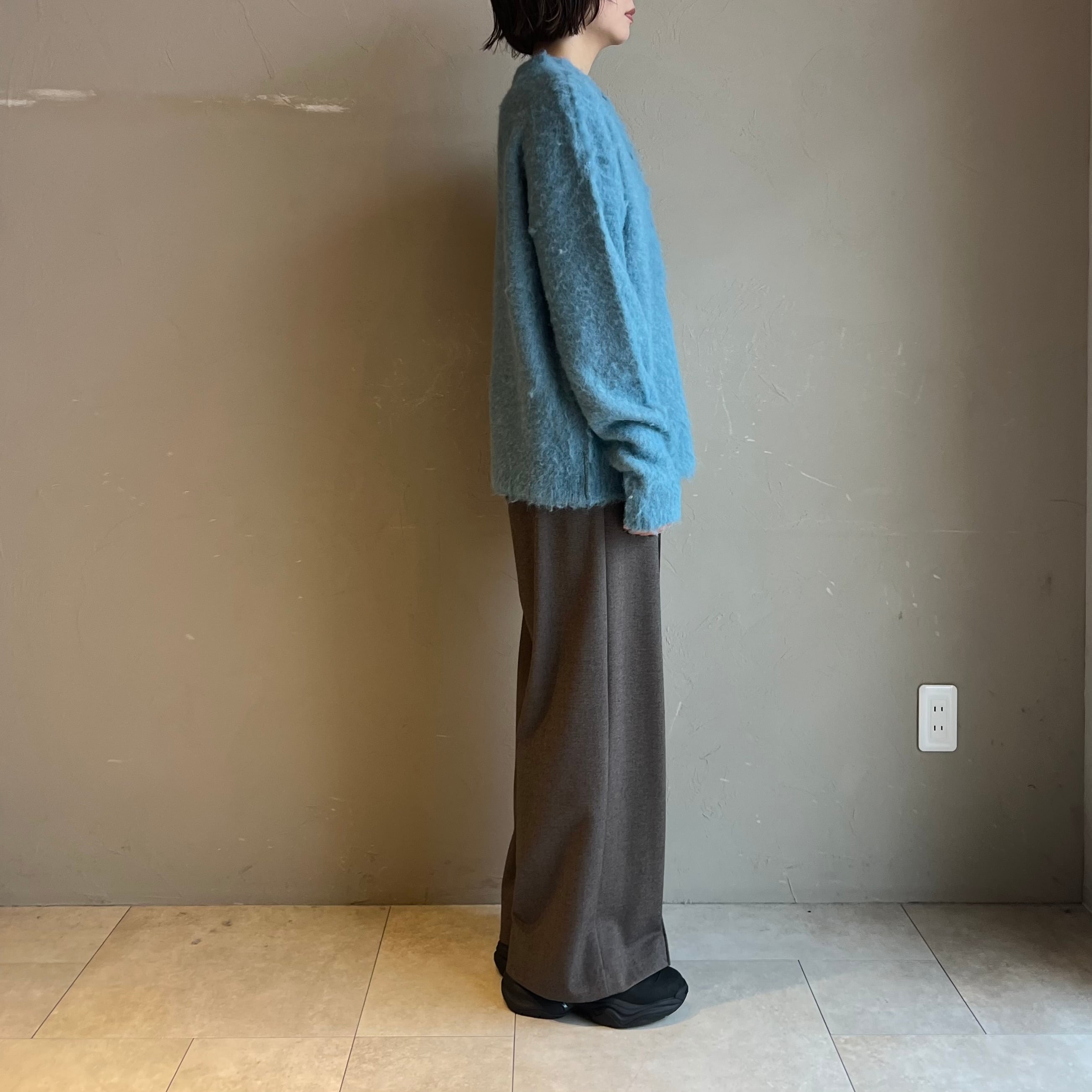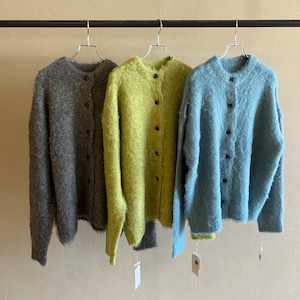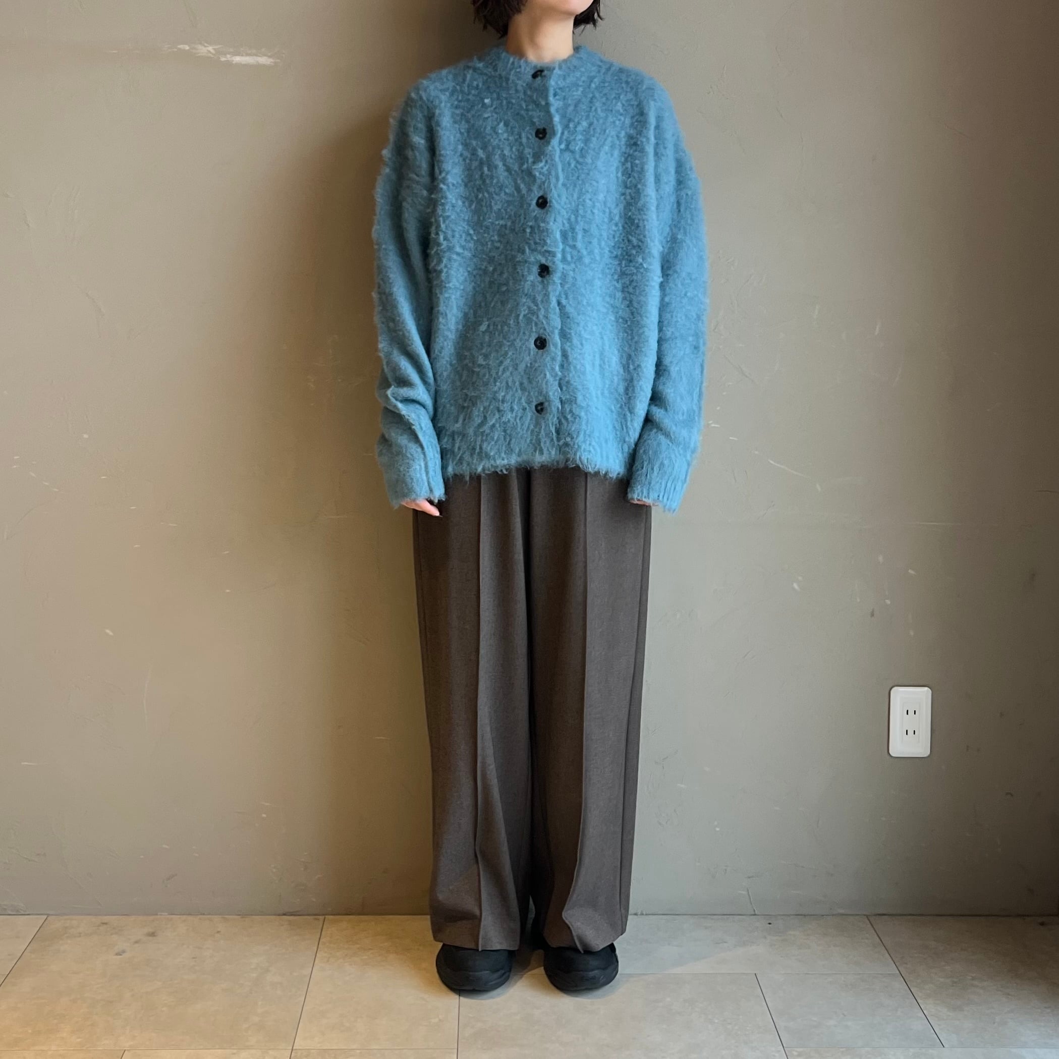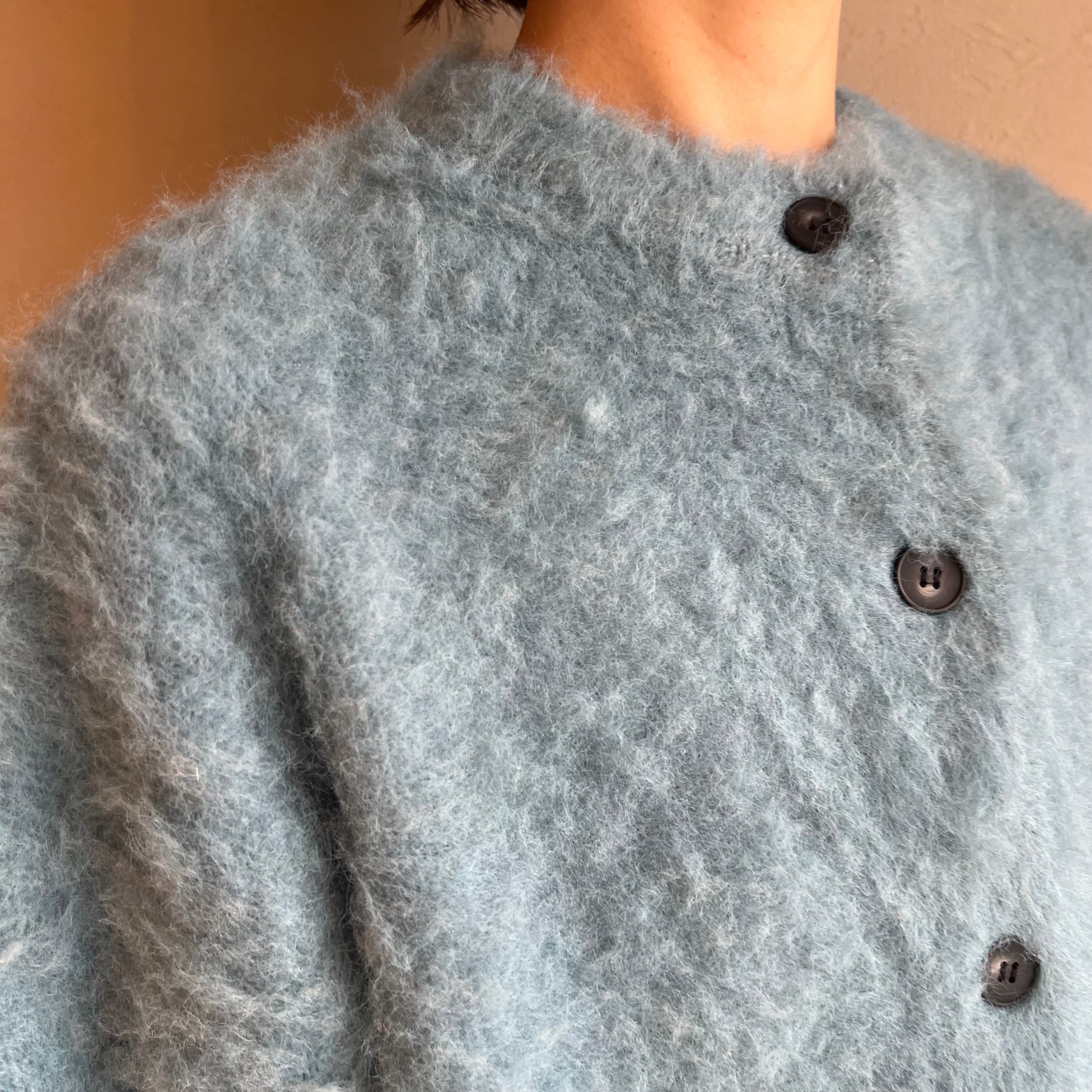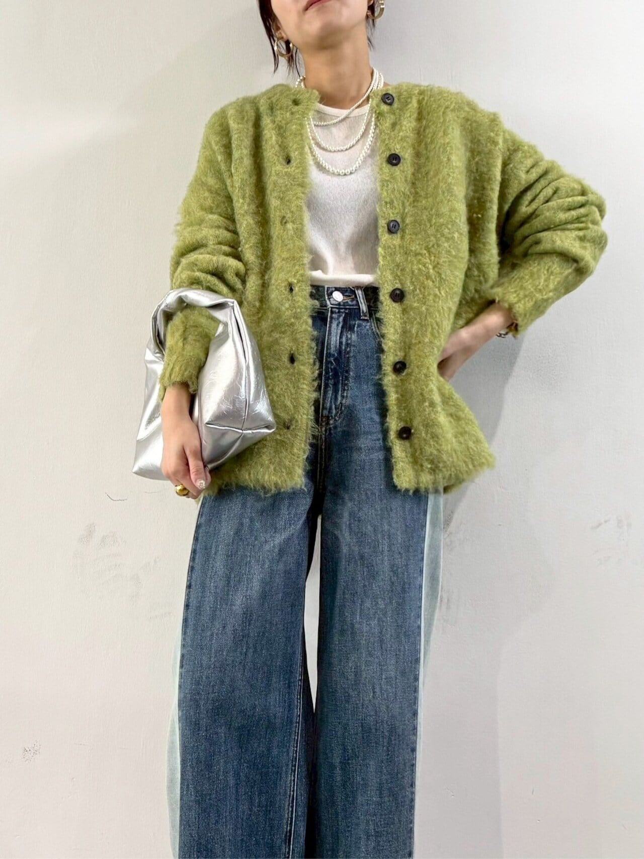 毛足が特徴のシャギーニットを使用した軽量で柔らかなカーディガン。程よくゆったりとしたサイズ感と長めの着丈で、さっと羽織るだけでこなれた印象に。