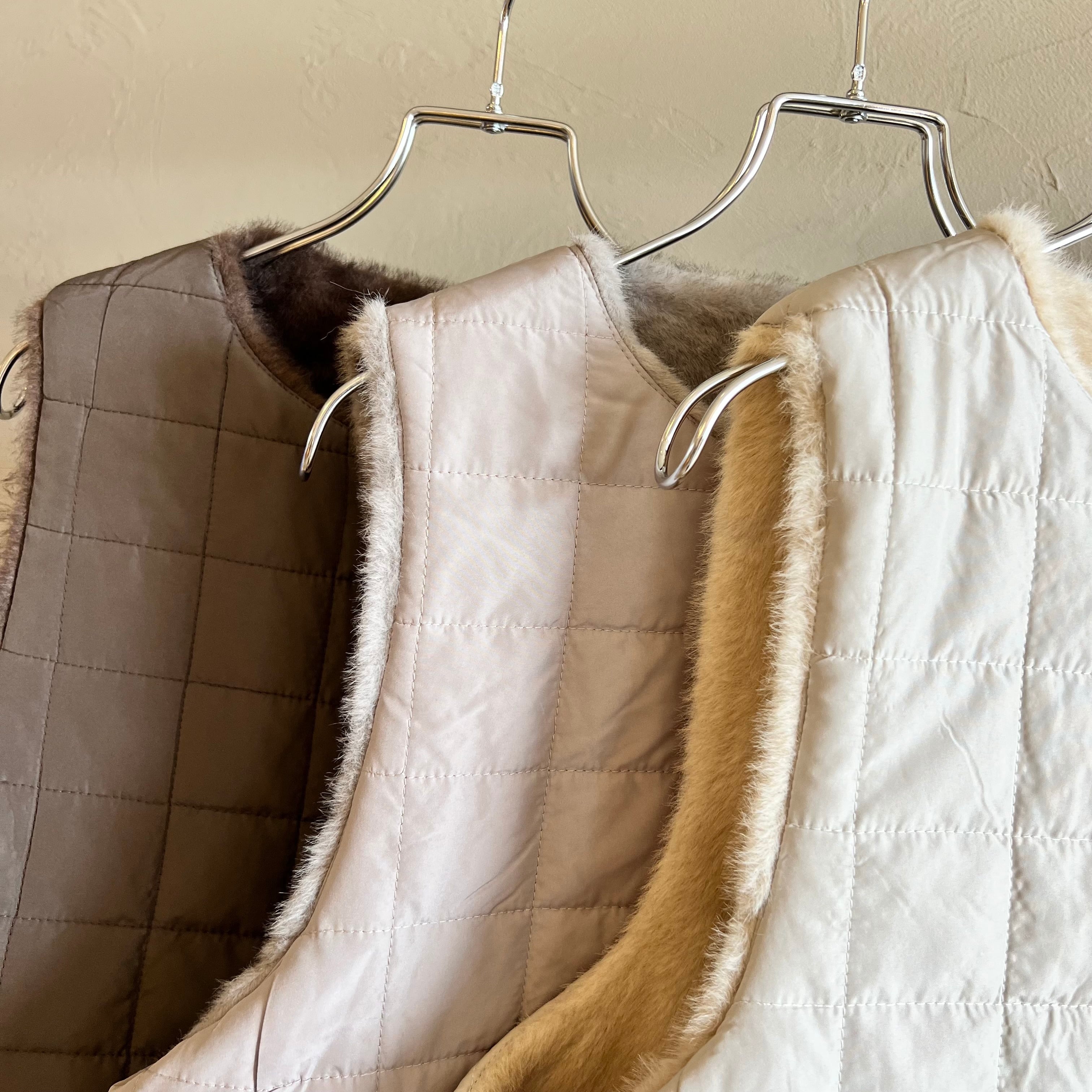 【 QTUME 】トッププリントファー×スクエアキルト2wayベスト