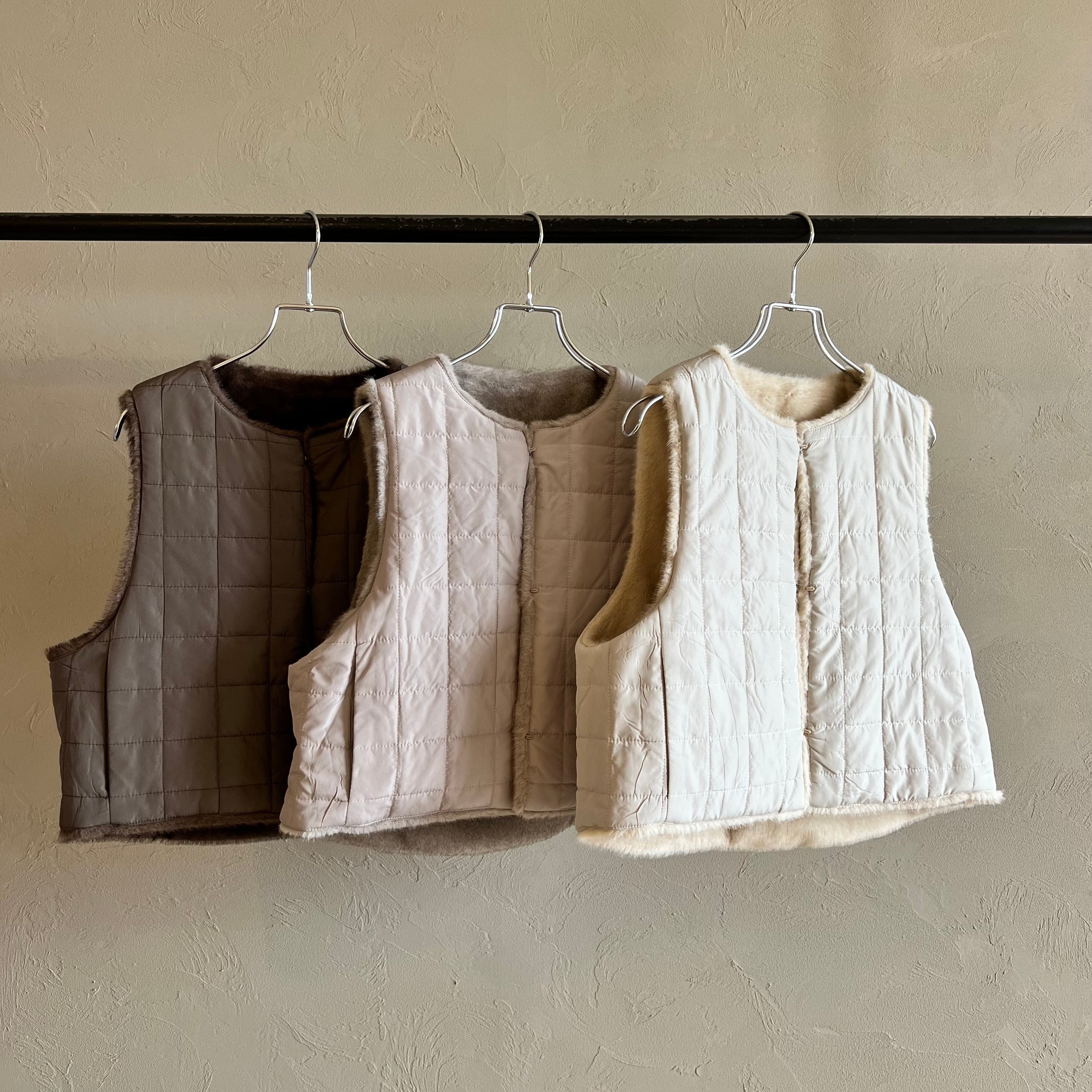 ファーと中わたキルトのリバーシブルでふたつの雰囲気をお楽しみいただけます。