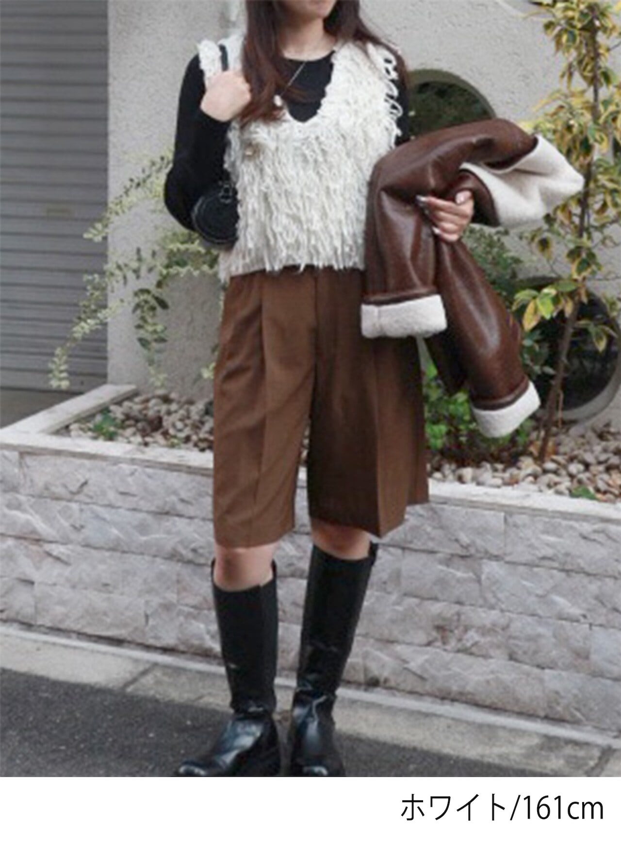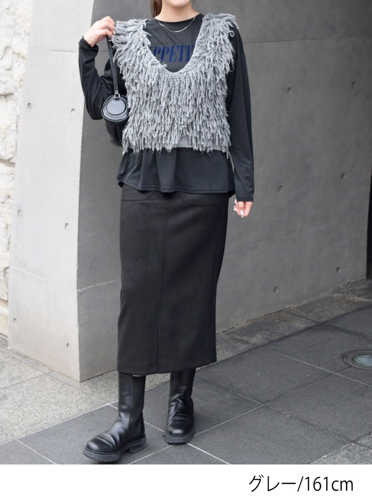 存在感のある編み地ながら、Vネックデザインで顔まわりをすっきり見せてくれます。