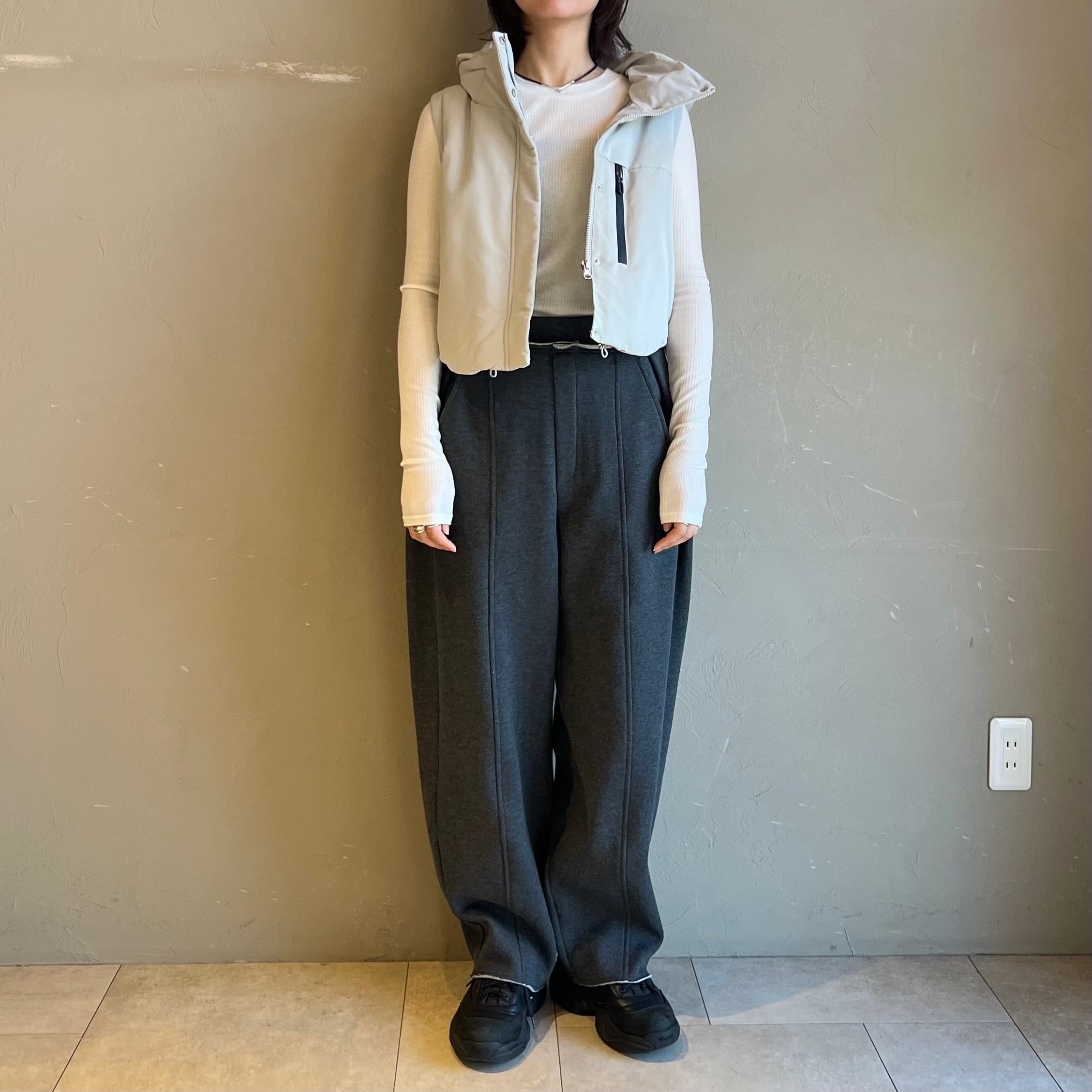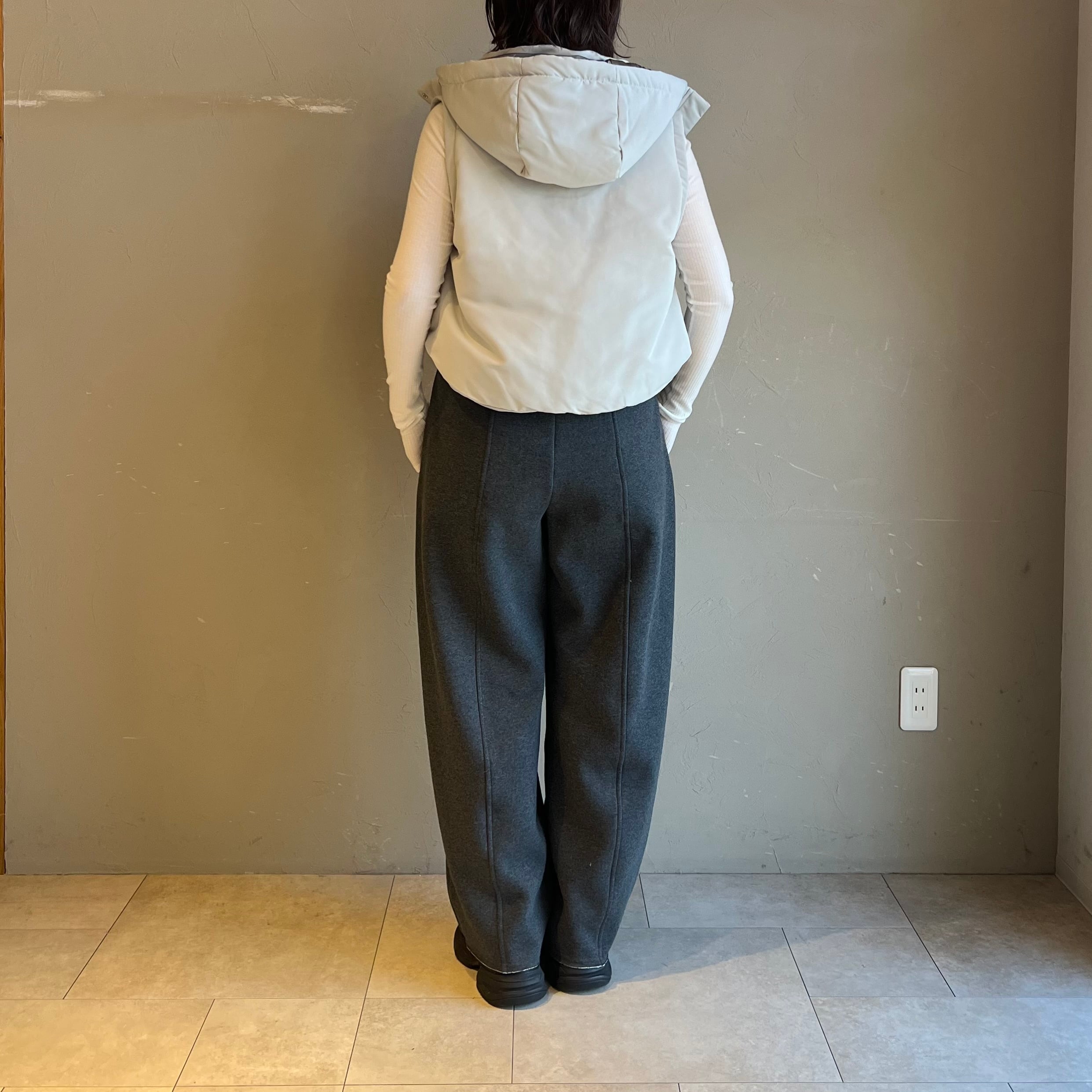 ふっくら中綿とすっきり短め丈で、ワイドパンツやワンピースとも好バランス。
