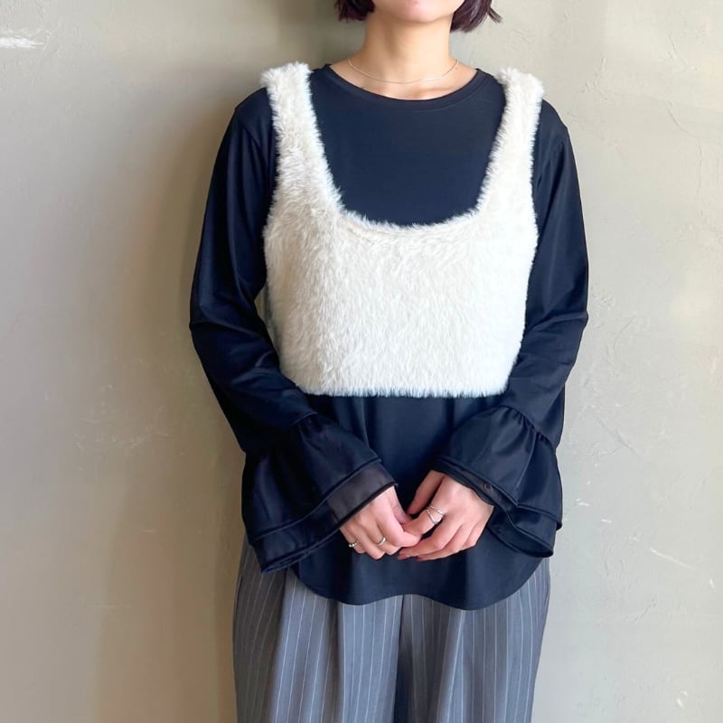 【NUS】2wayシャギーニットビスチェは、ふわふわの毛足がコーデにやさしいぬくもりと旬の立体感をプラス。