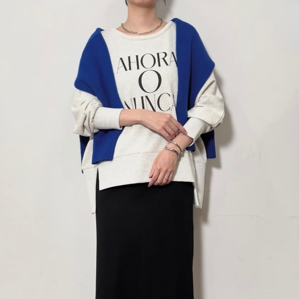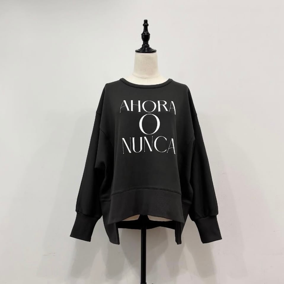 前後差と裾が前振りになったデザインが特徴のロゴスウェット。