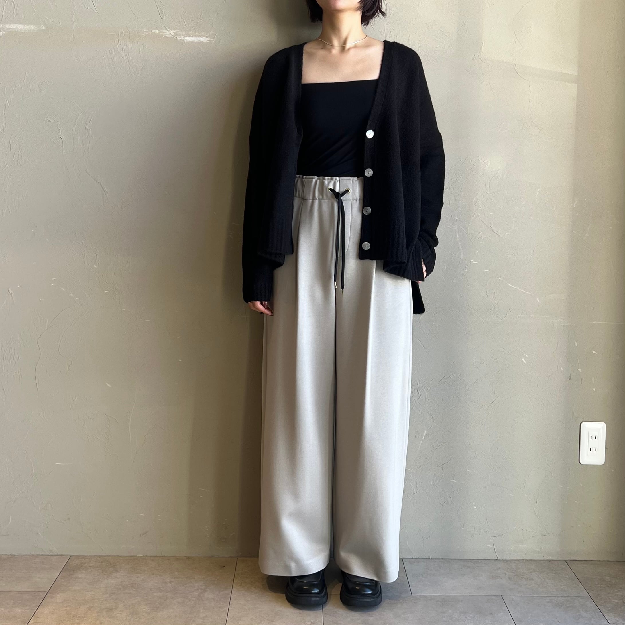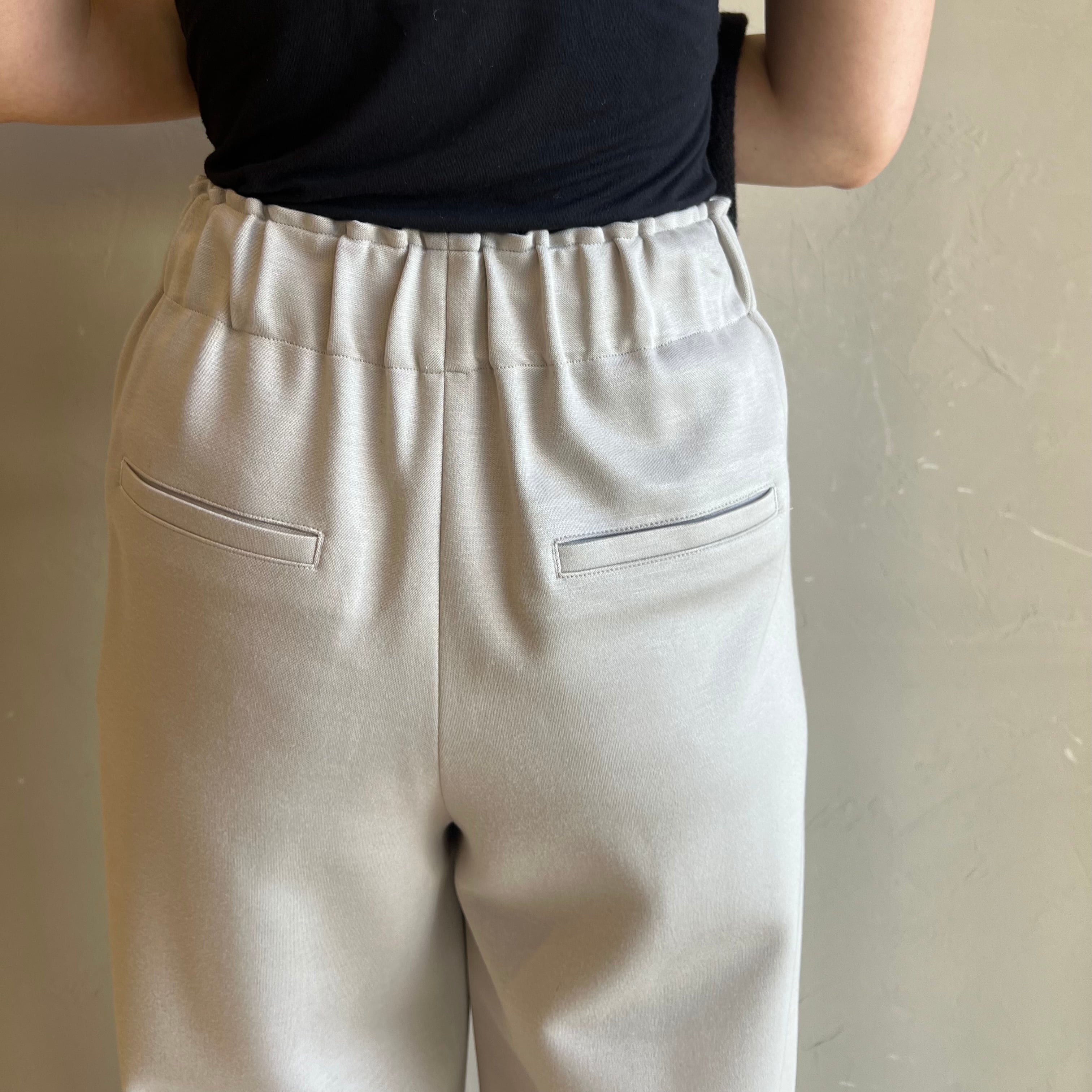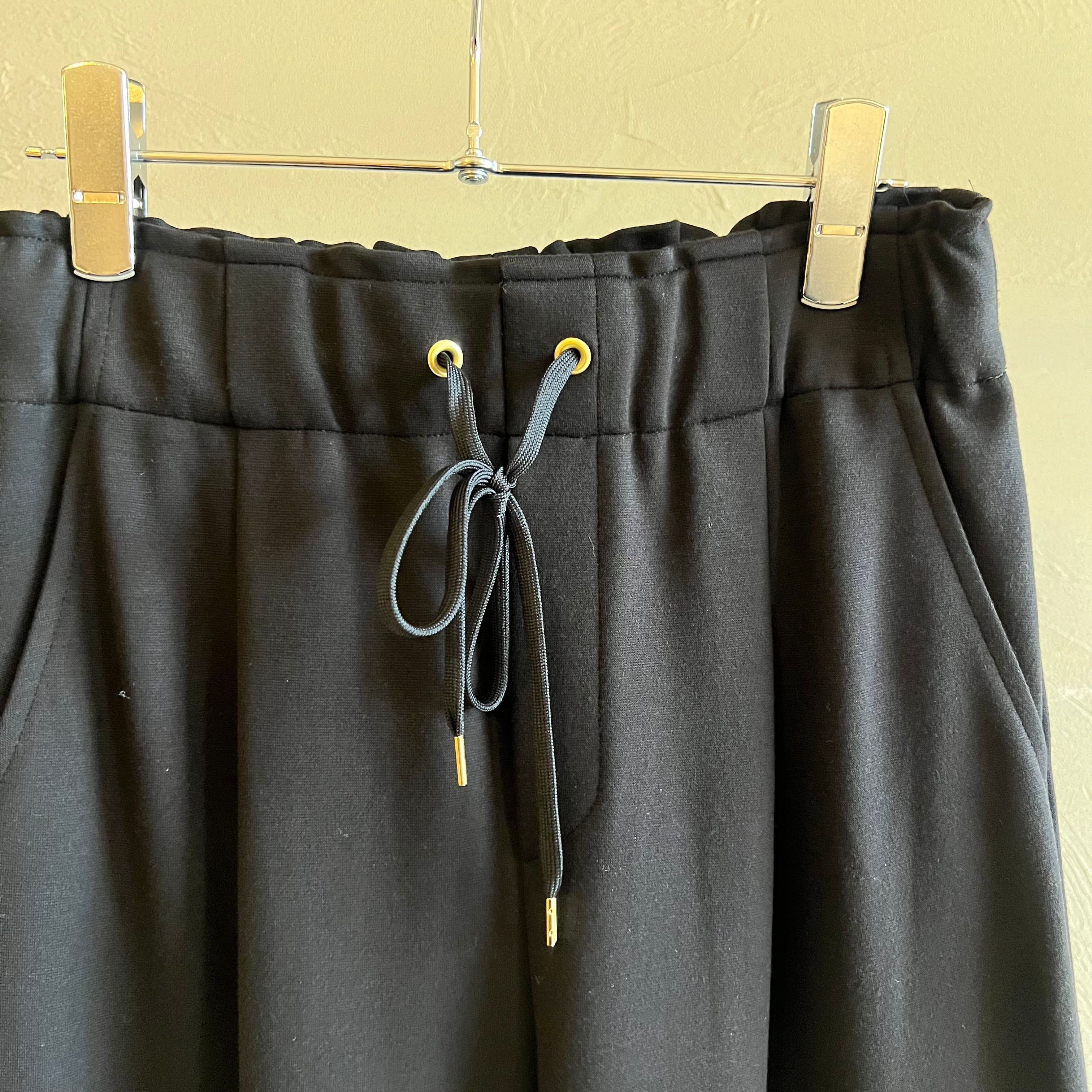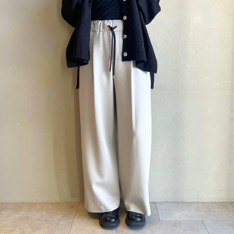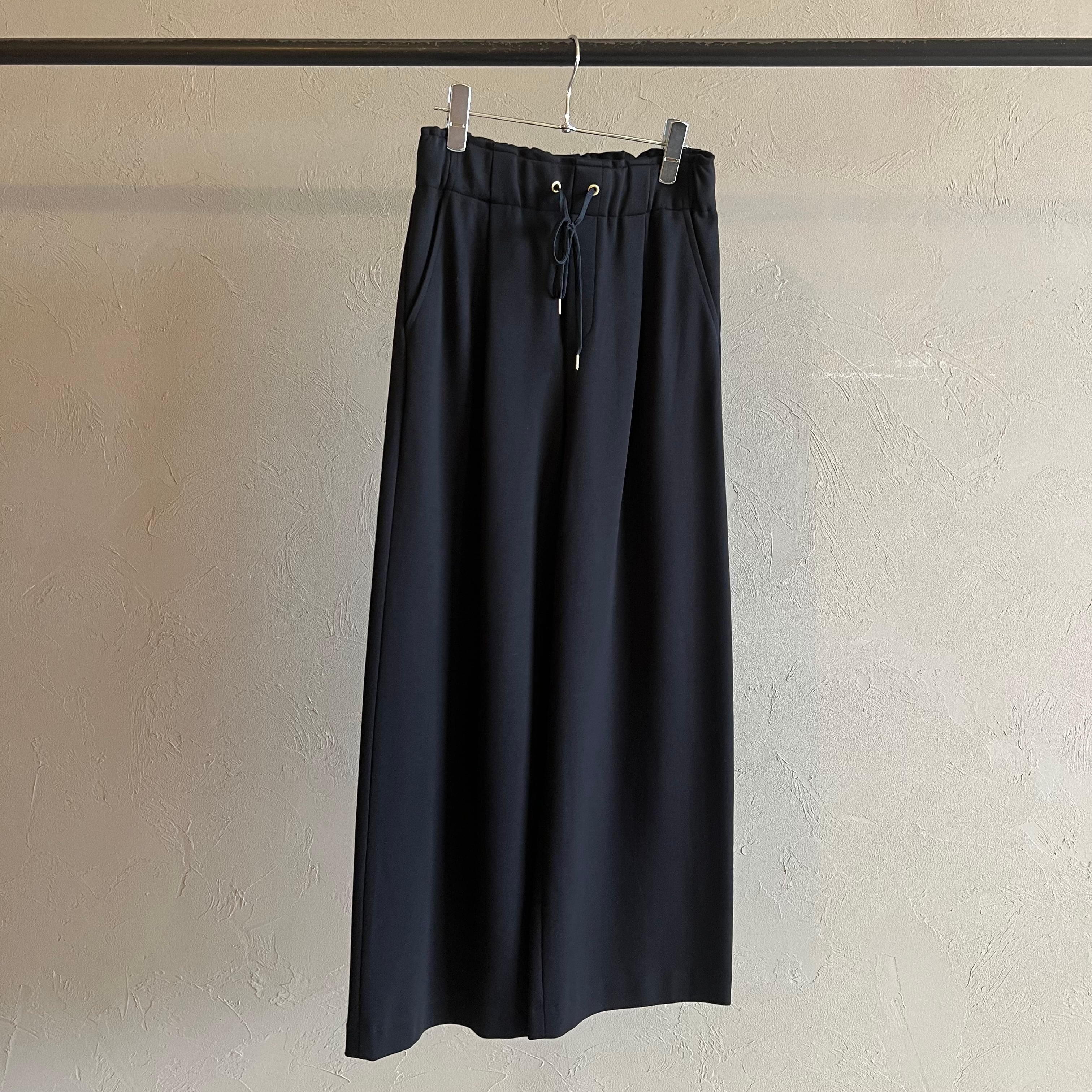 外気が肌寒い時期でも、心地よい温かさを持続させますが、ハリ感と柔らかさがあり、落ち感のあるストレッチ抜群のジャージ素材のストレッチワイドパンツです。