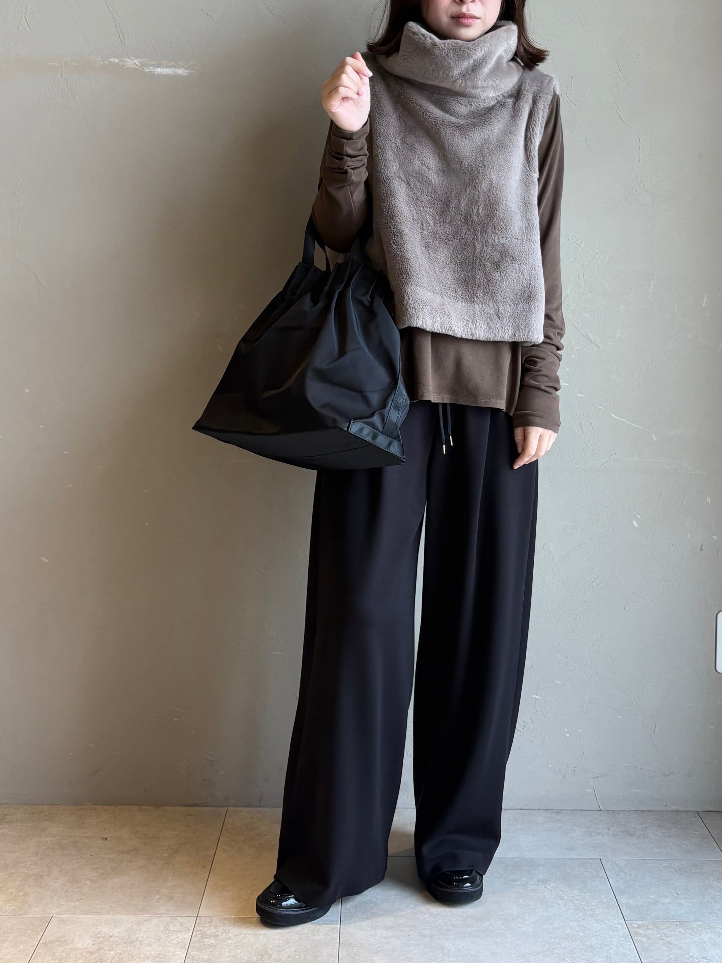 体温を利用して生地が温かみを感じることができる特別な繊維DUALWARMを使用したワイドパンツ。