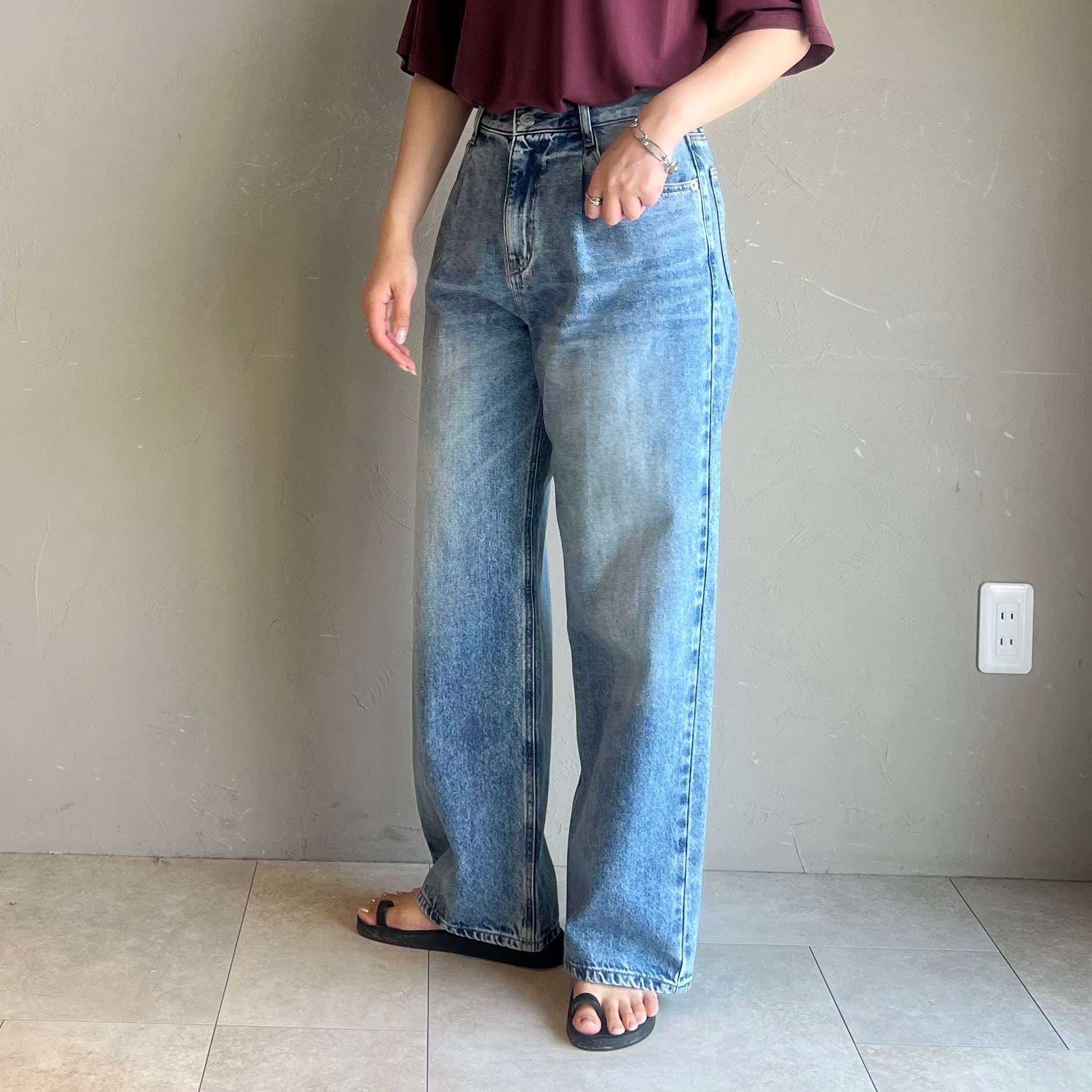 【CAFUNE】タックバギーデニムパンツは旬のワイドシルエットに美脚効果を兼ね備えた1本。