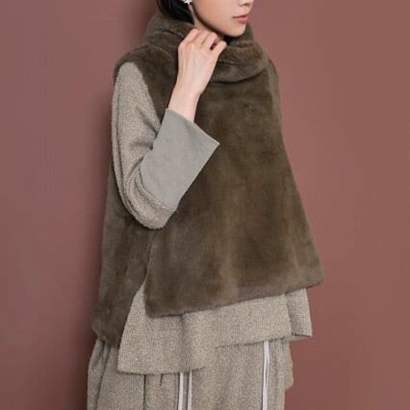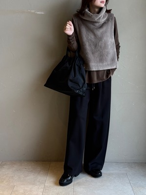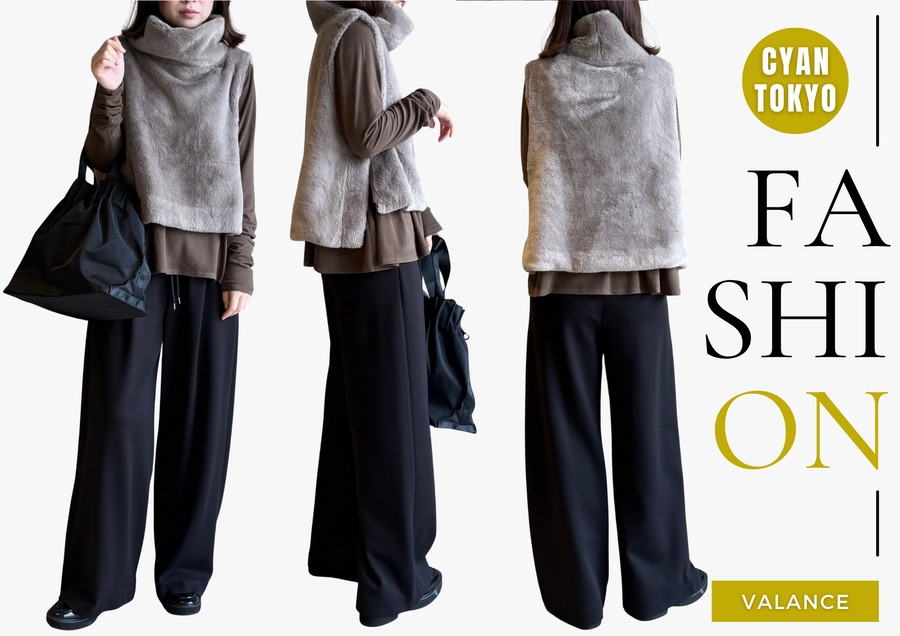 【CYAN TOKYO/シアントーキョー】バックオーバーハイネックファーベストは、ふわっと軽いエコファーに包まれる幸せな一枚。