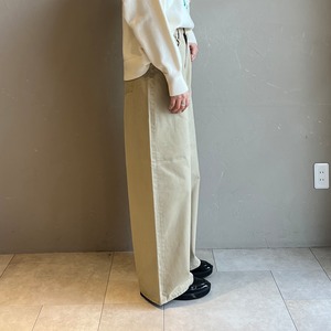 全体的にルーズなシルエットながら、ハイウエストで腰回りはすっきりとした印象です。