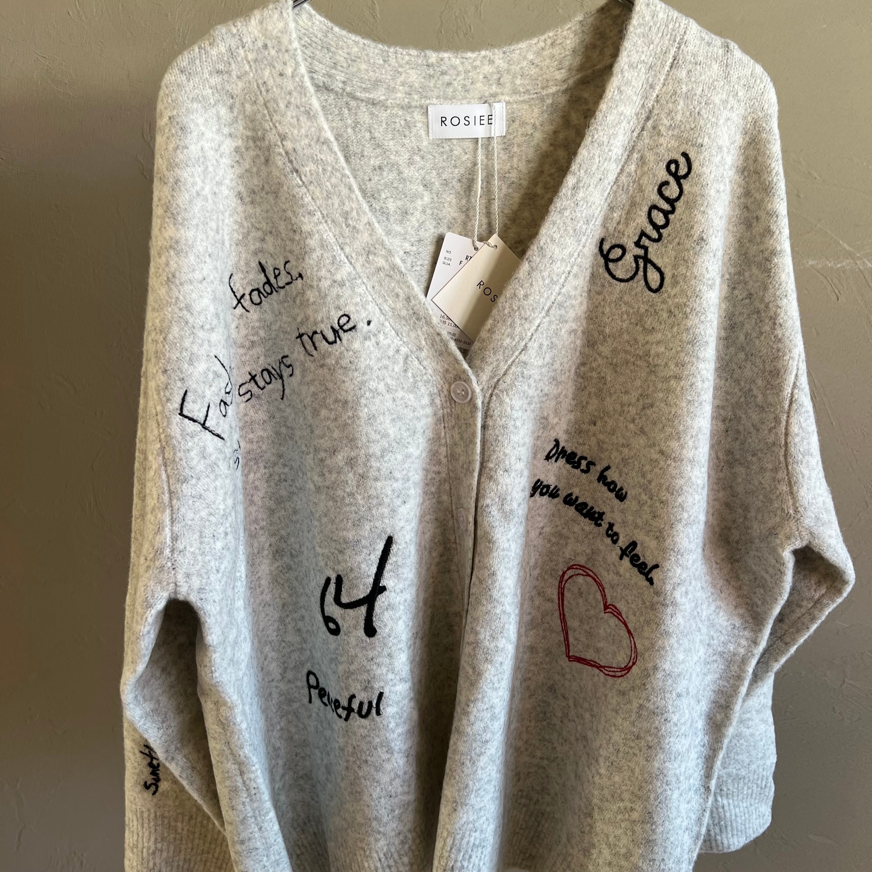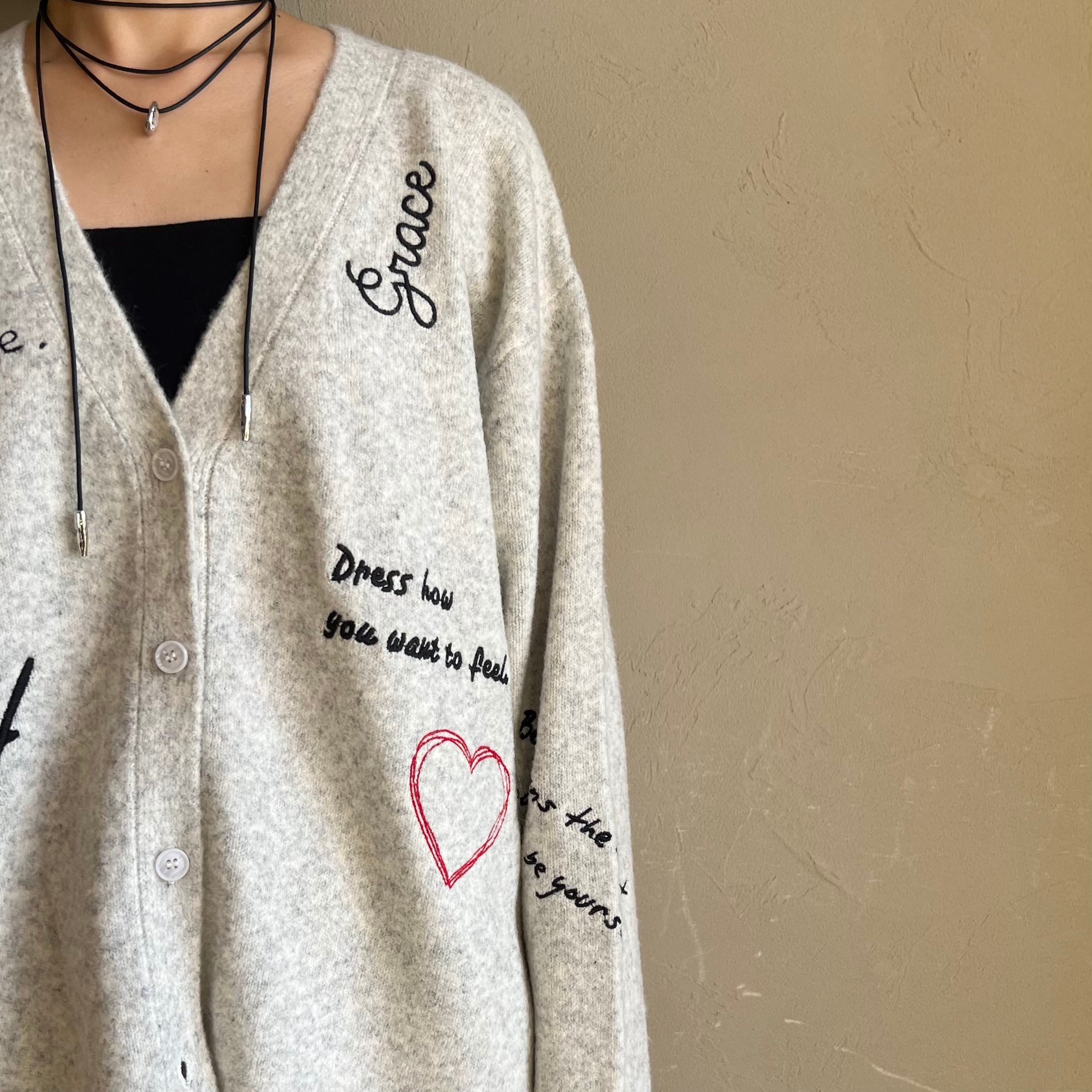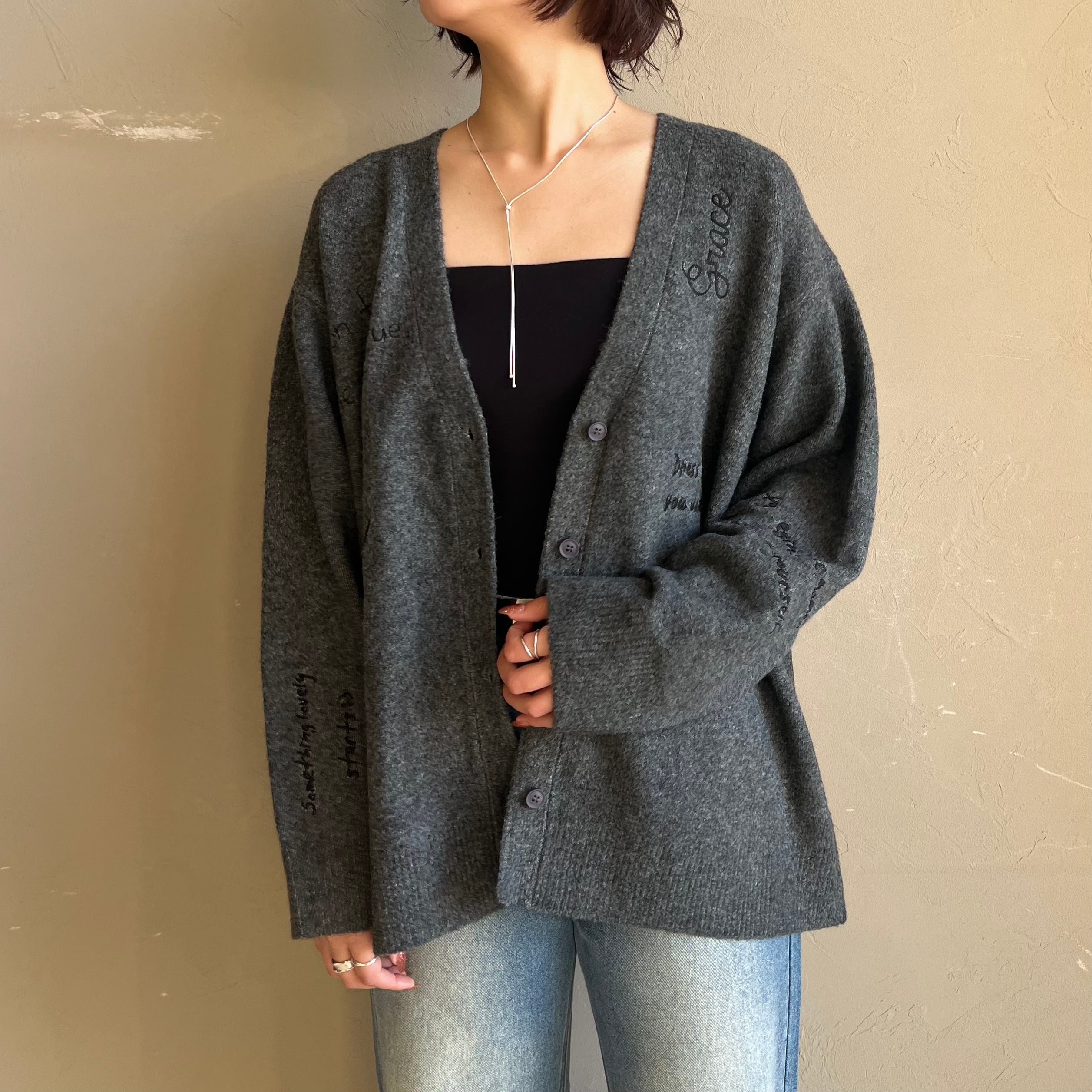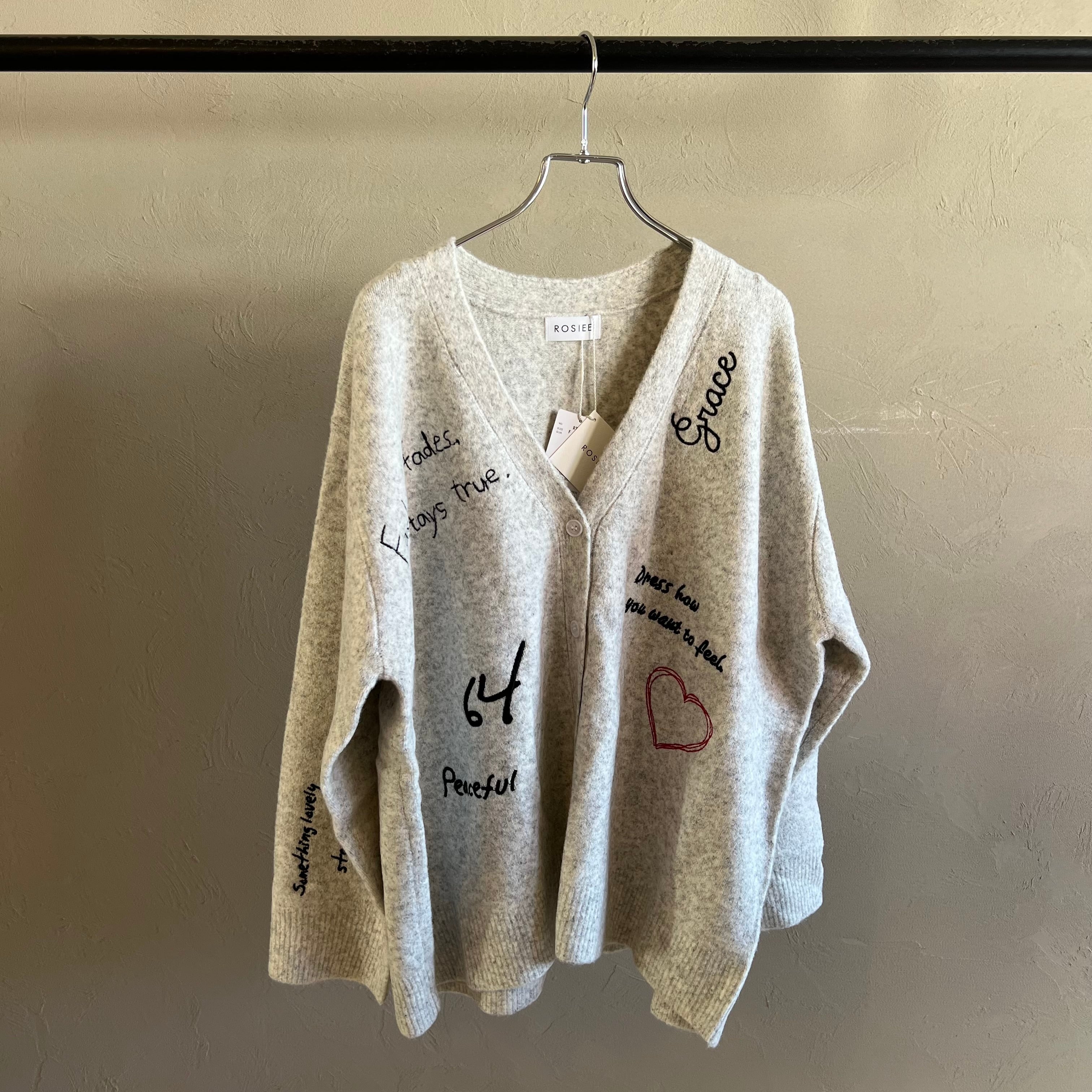 【 ROSIEE 】レタリング刺繍ニットカーディガン