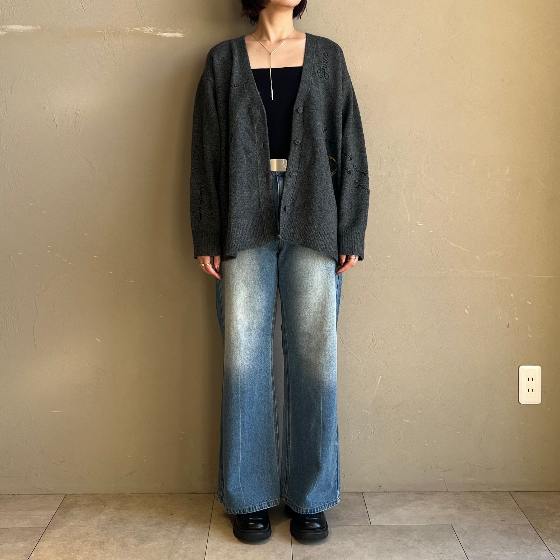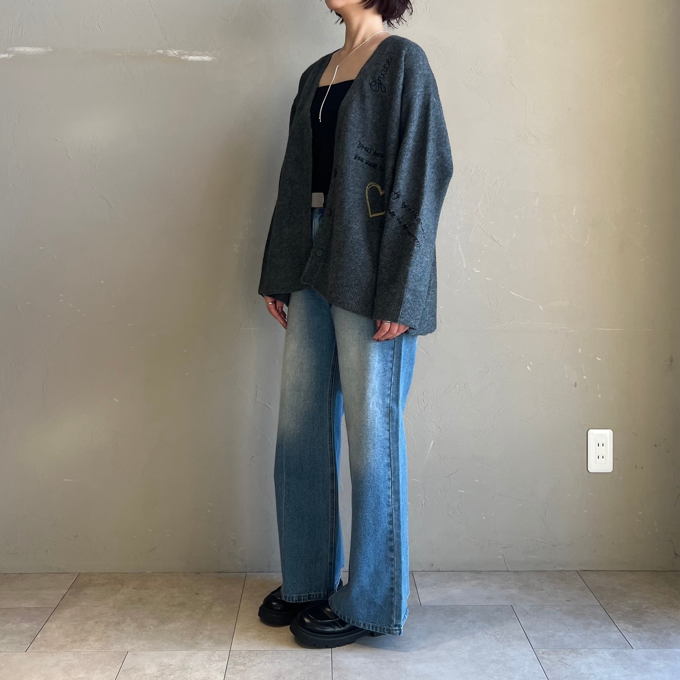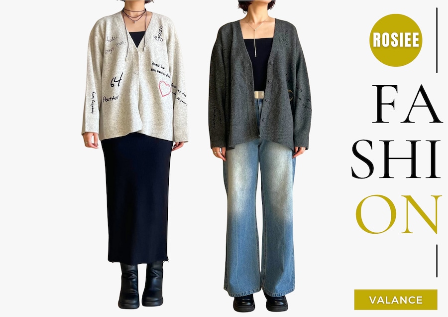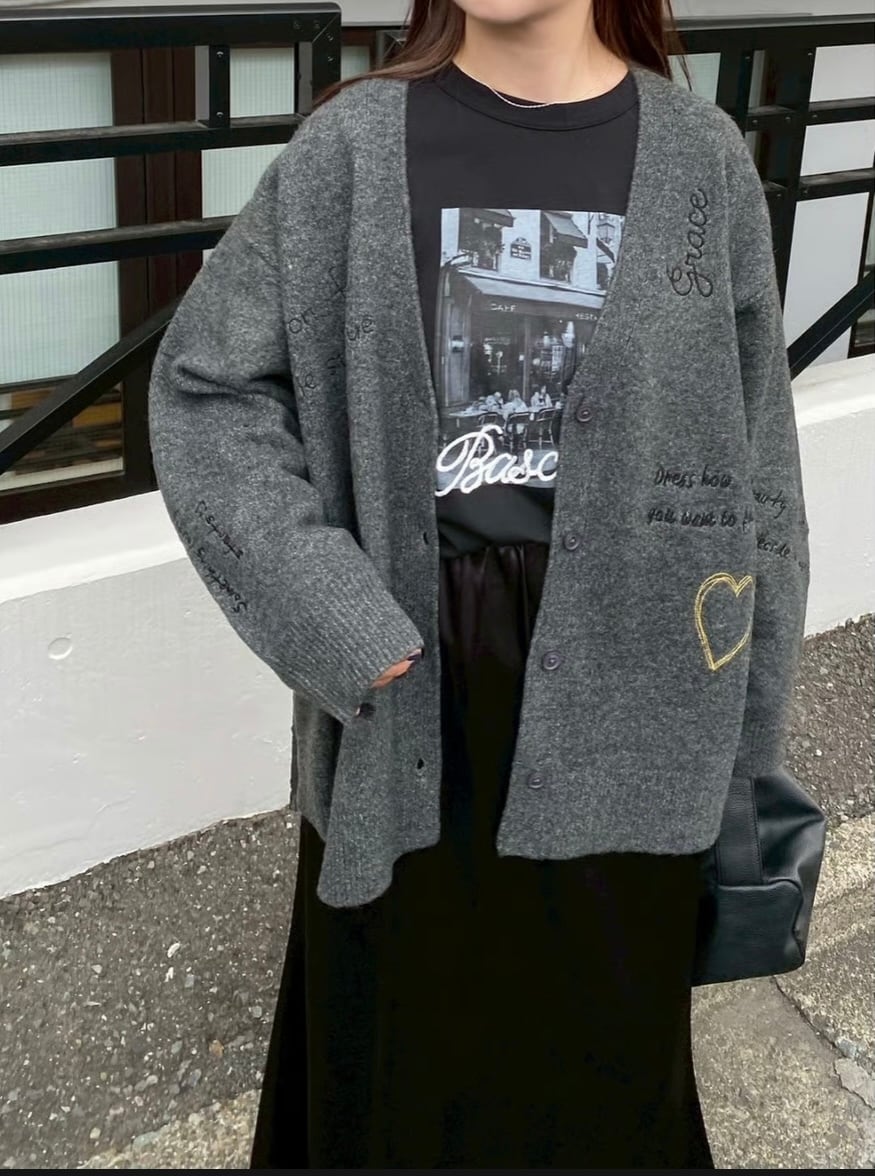 【 ROSIEE 】レタリング刺繍ニットカーディガン