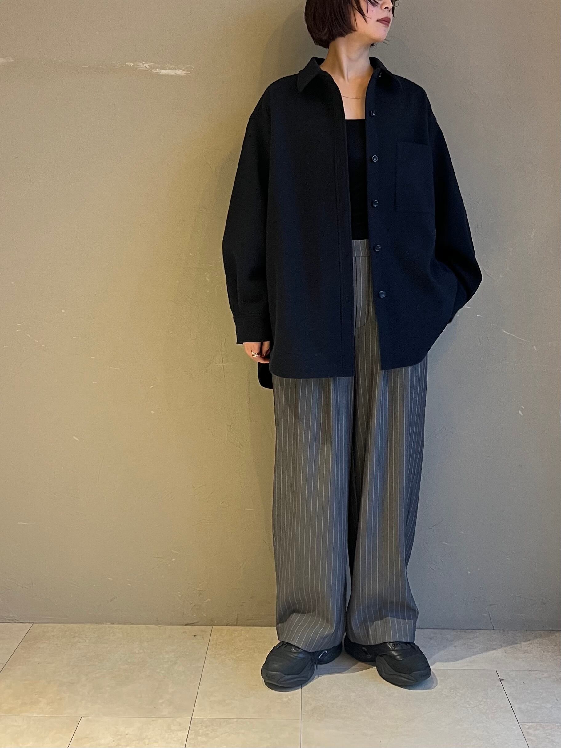 100persent.15様専用:《 一部サイズ11/16(日)まで販売 / 11月中旬以降発送 》【 CYNICAL 】ツイル×裏起毛ボンディングタックパンツ グレーストライプ/01