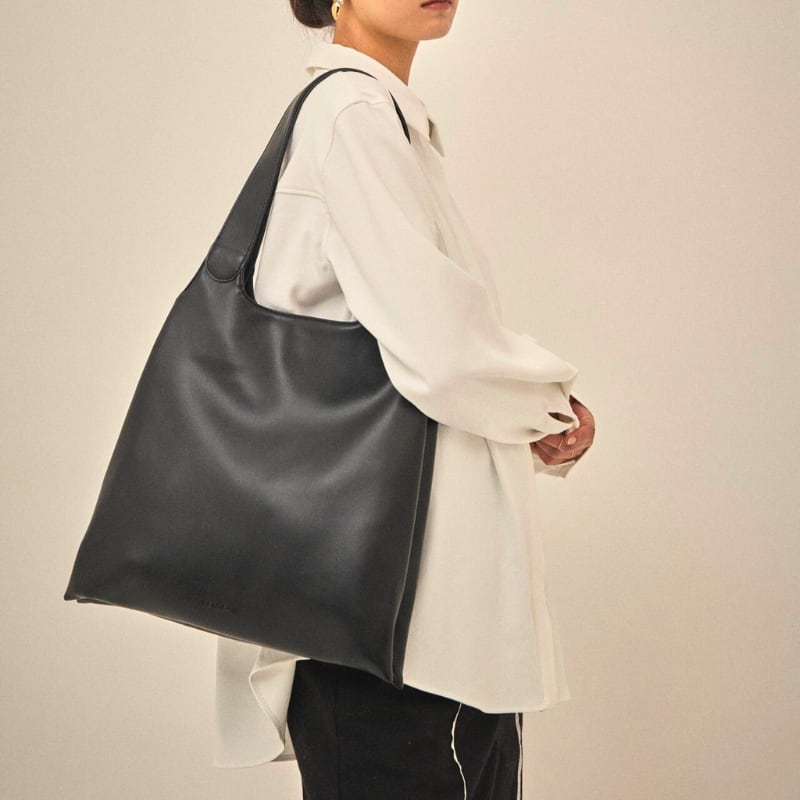 やわらかな質感とミニマルなフォルムが魅力のトートバッグ。