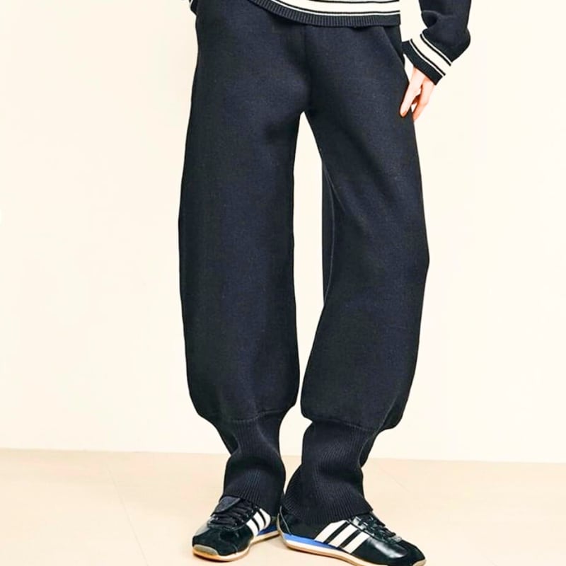 シルエットは少し太めで裾のリブ範囲を広めに作っているのでシンプルだけどデザイン制のある飽きの無いニットパンツです。