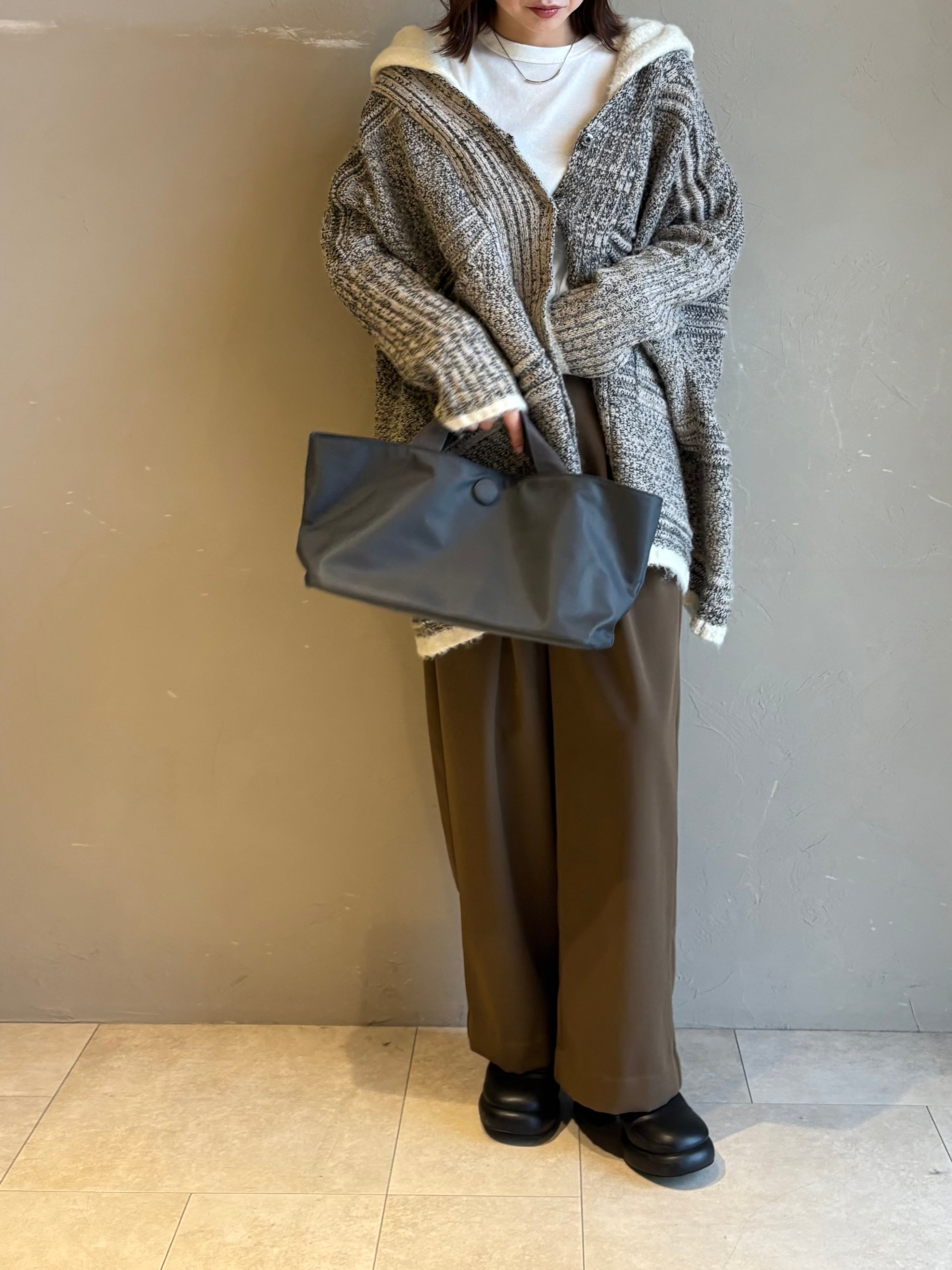 見た目はこんなに暖かいように見えないので、お仕事や、スウェット・ニットとカジュアルダウンして合わせるのもおすすめ。