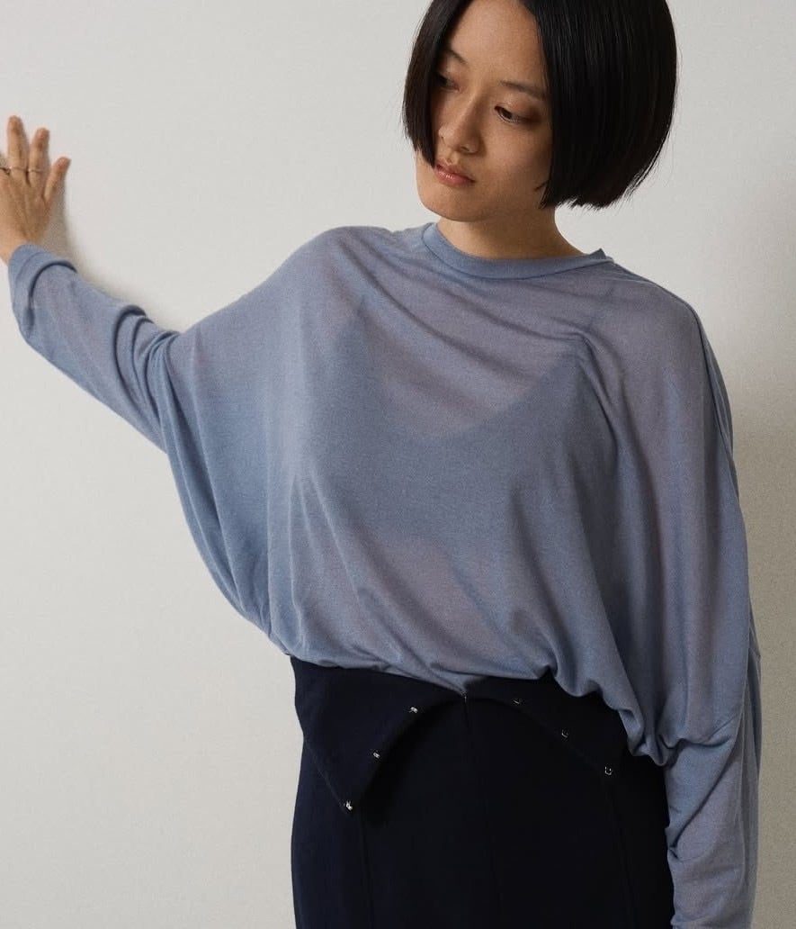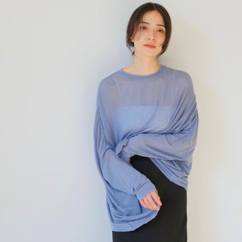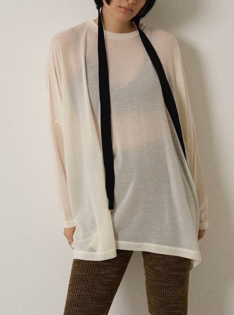 程よい透け感がほんのりセンシュアルな雰囲気を漂わせ、シンプルに一枚着でも、インナーとしてもスタイリングを格上げしてくれる一着。