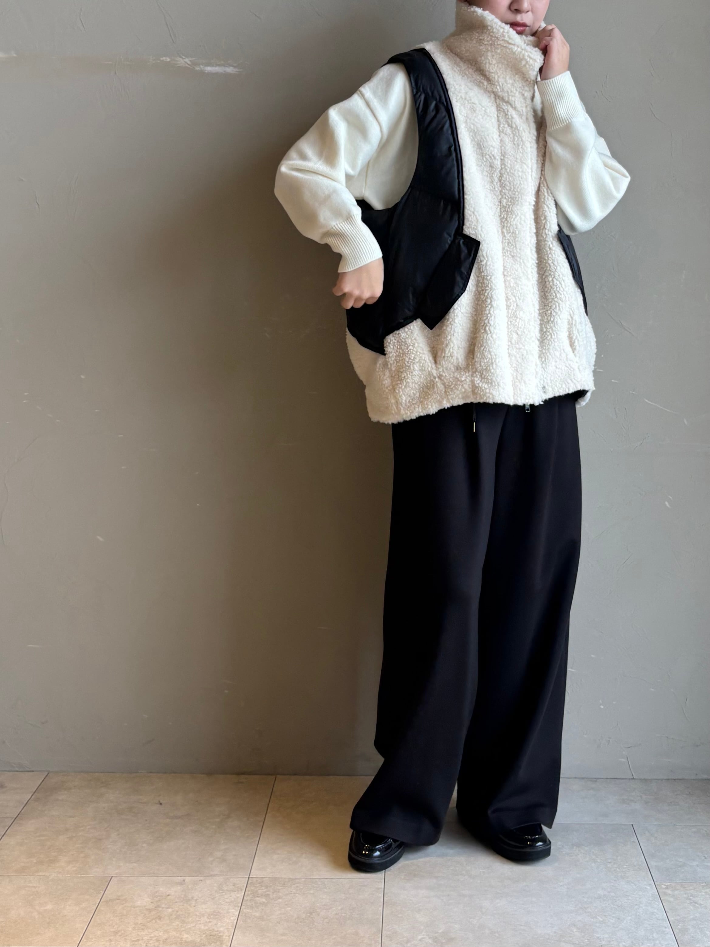 体温を利用して生地が温かみを感じることができる特別な繊維DUALWARMを使用したワイドパンツ。