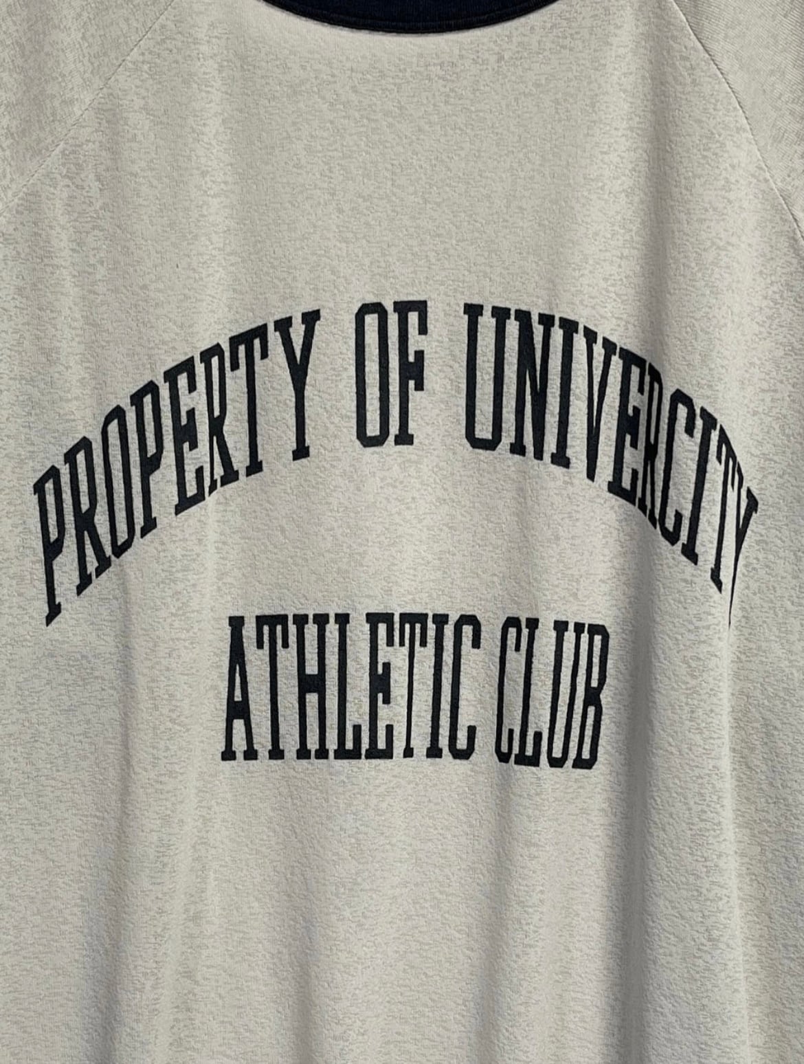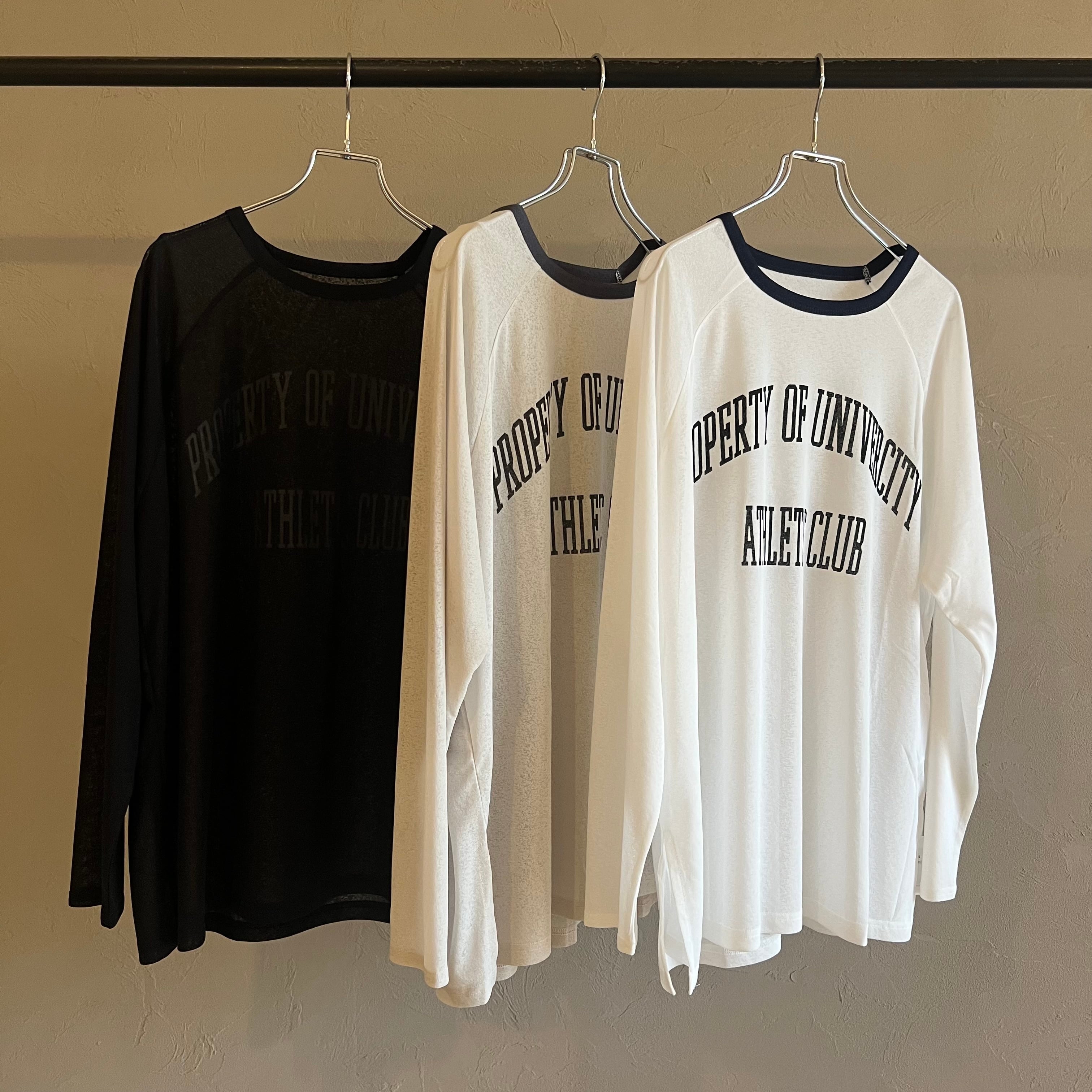 ロゴはアーチ状のカレッジ風フォントをプリントし、ヴィンテージ感を演出。