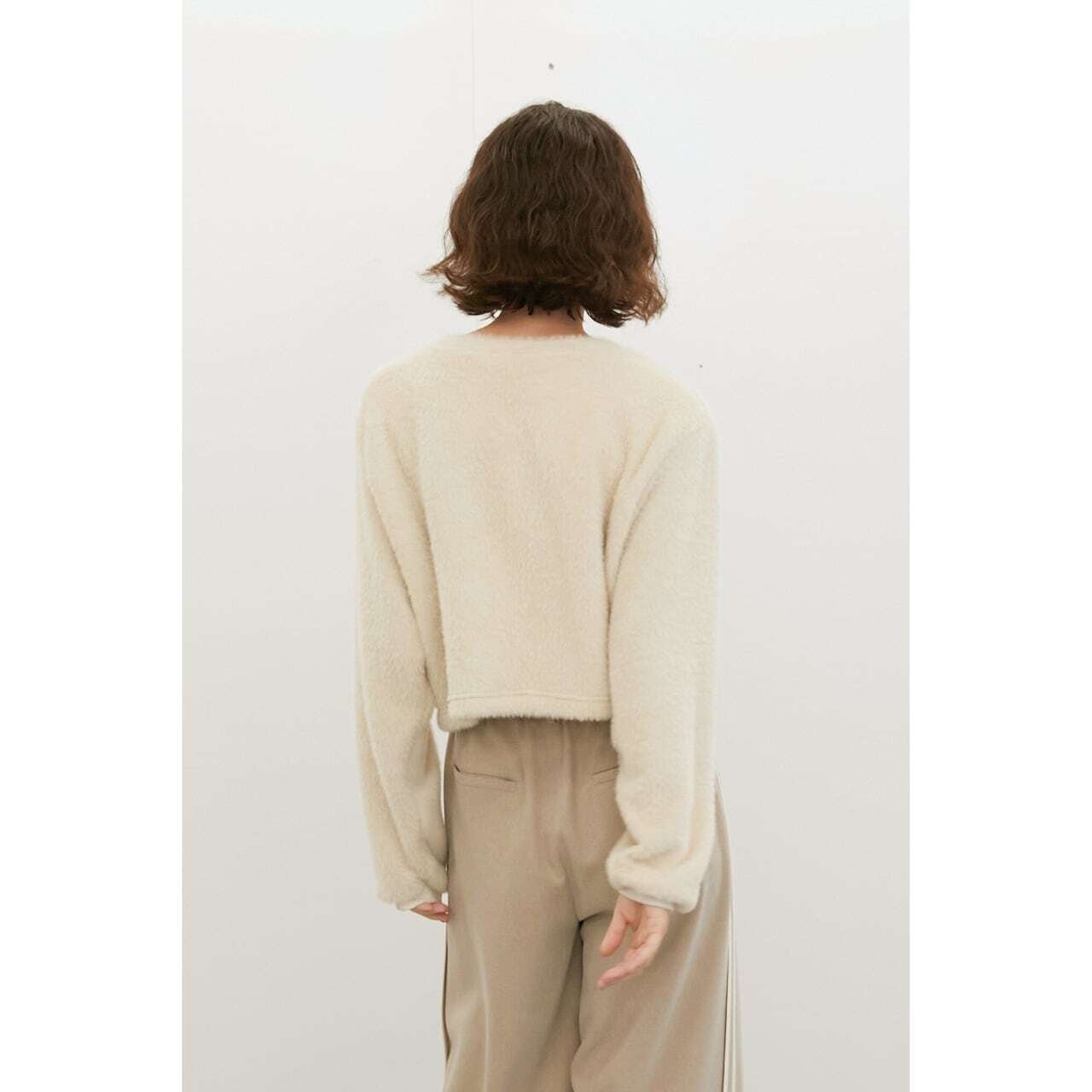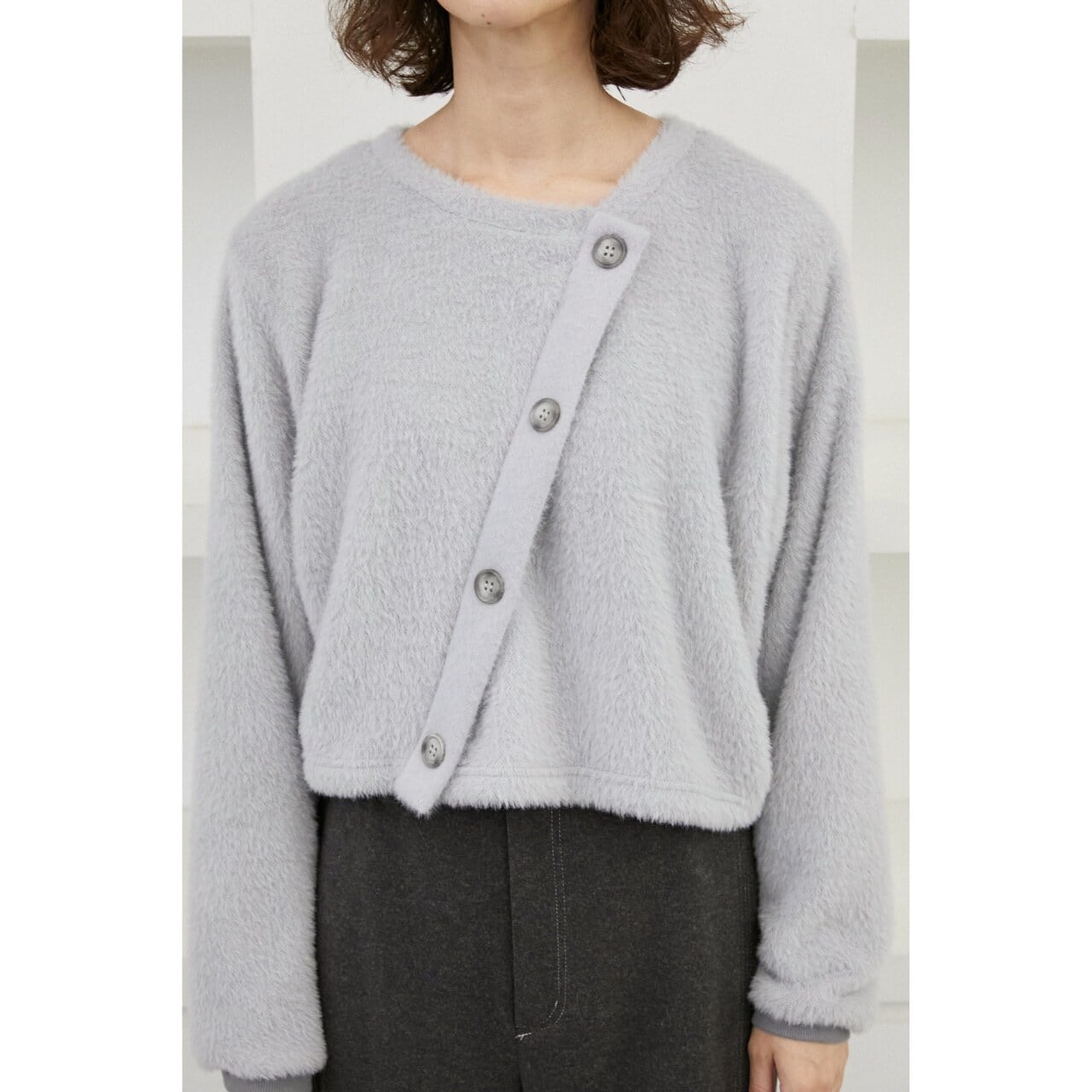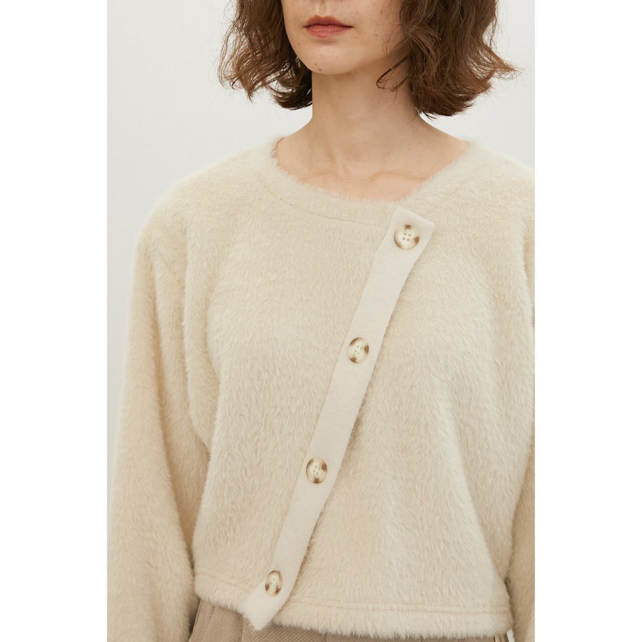 ふんわりとしたシャギー素材が魅力のプルオーバー。