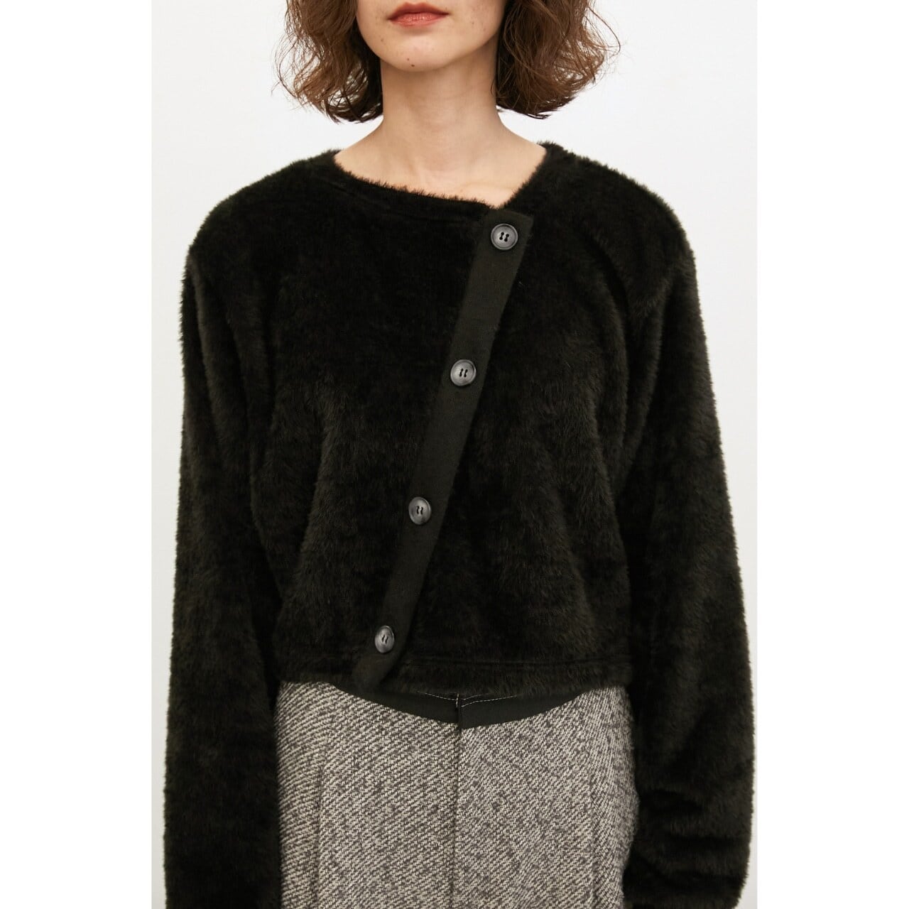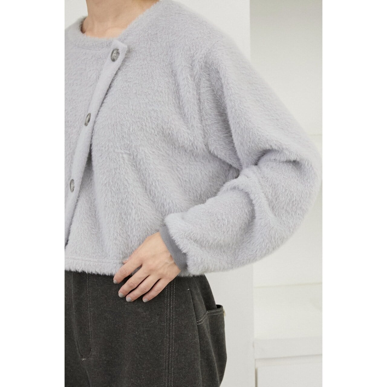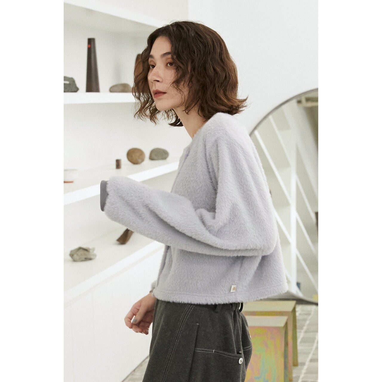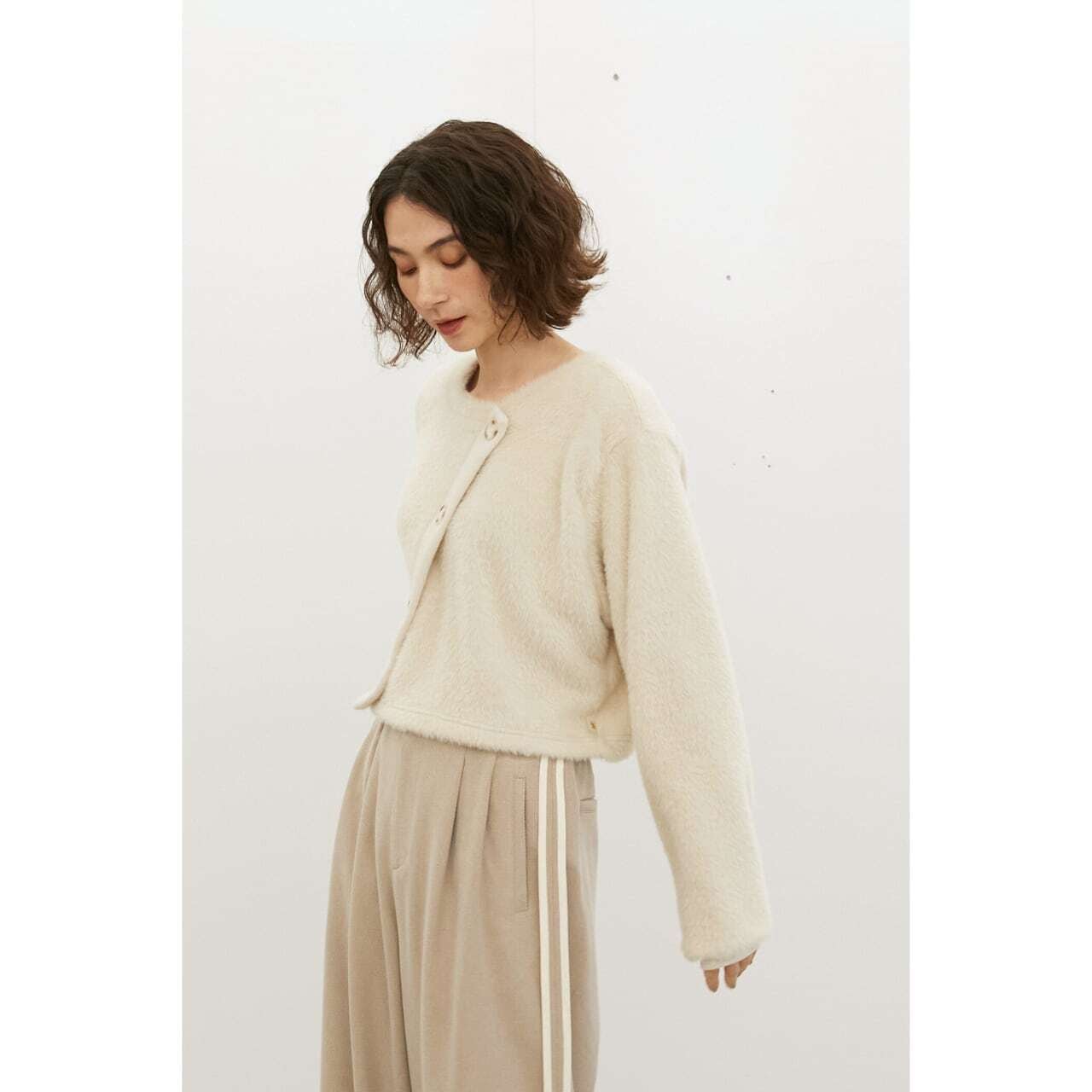 ふんわりとしたシャギー素材が魅力のプルオーバー。