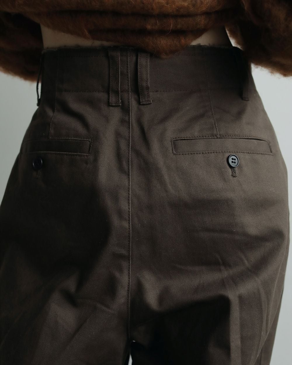 太めのタックを入れ、裾までストレートに落ちるワイドシルエットに仕上げました。
