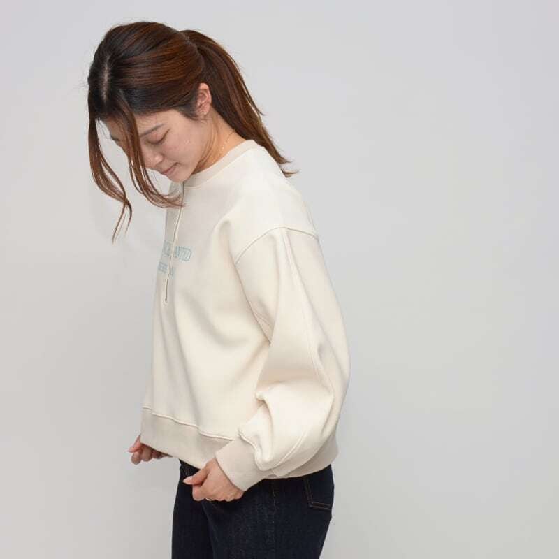 フロントネックにはハーフジップデザインを採用し、着こなしに抜け感をプラス。