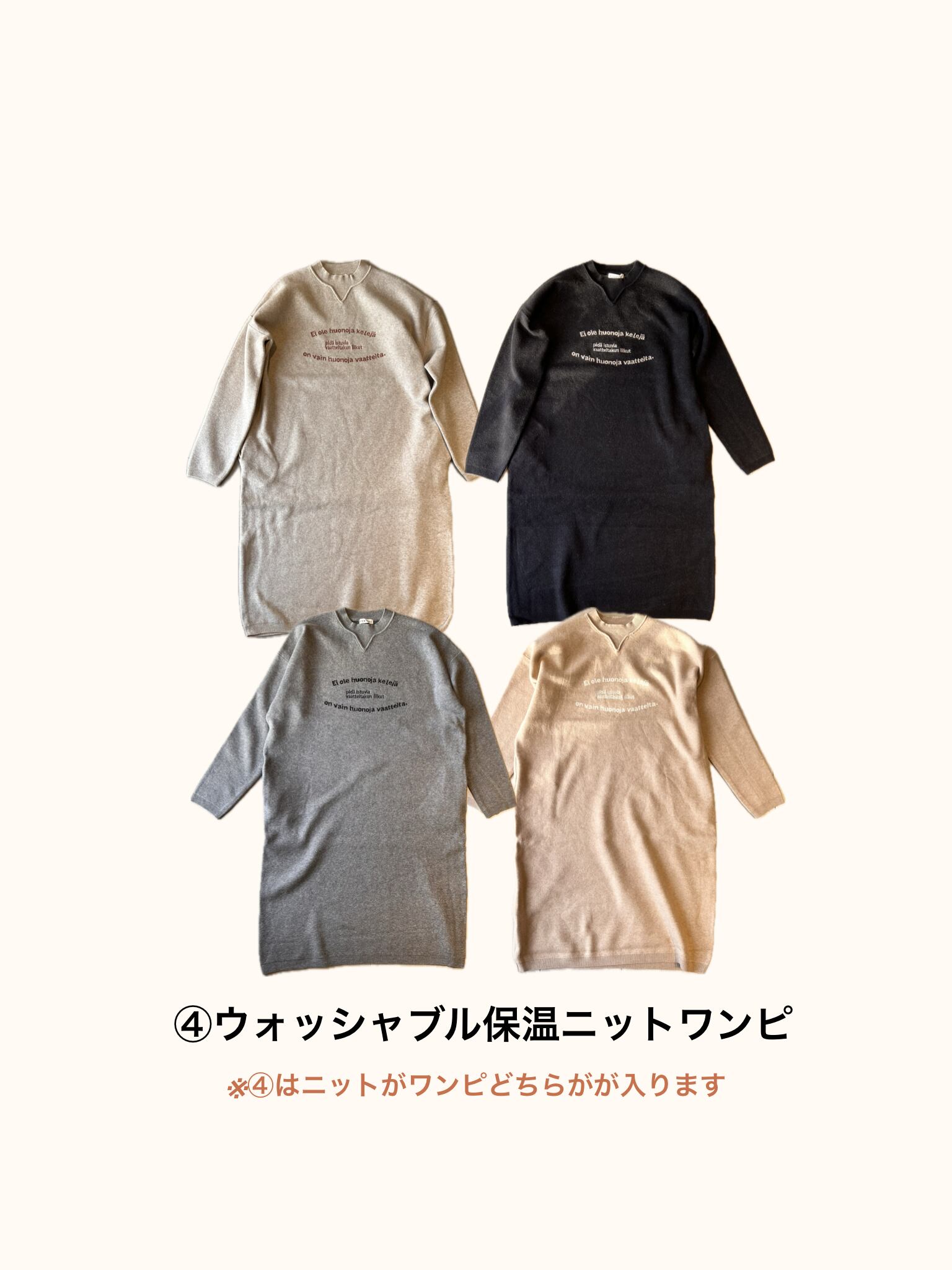 ④【ウォッシャブル保温ニットワンピース】