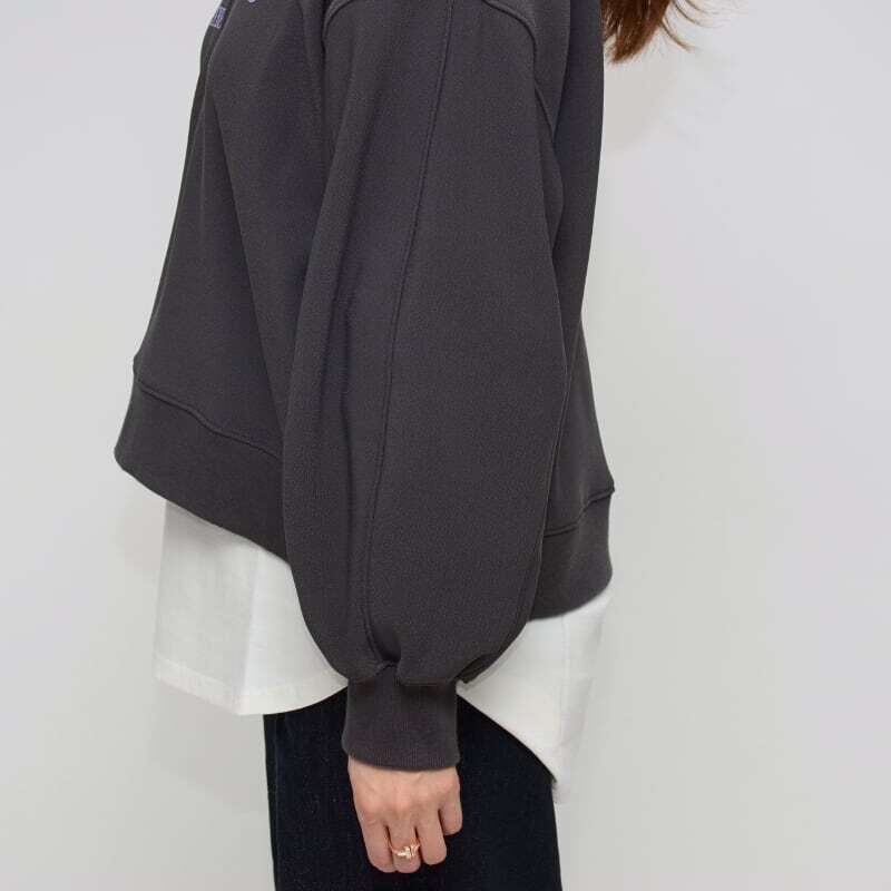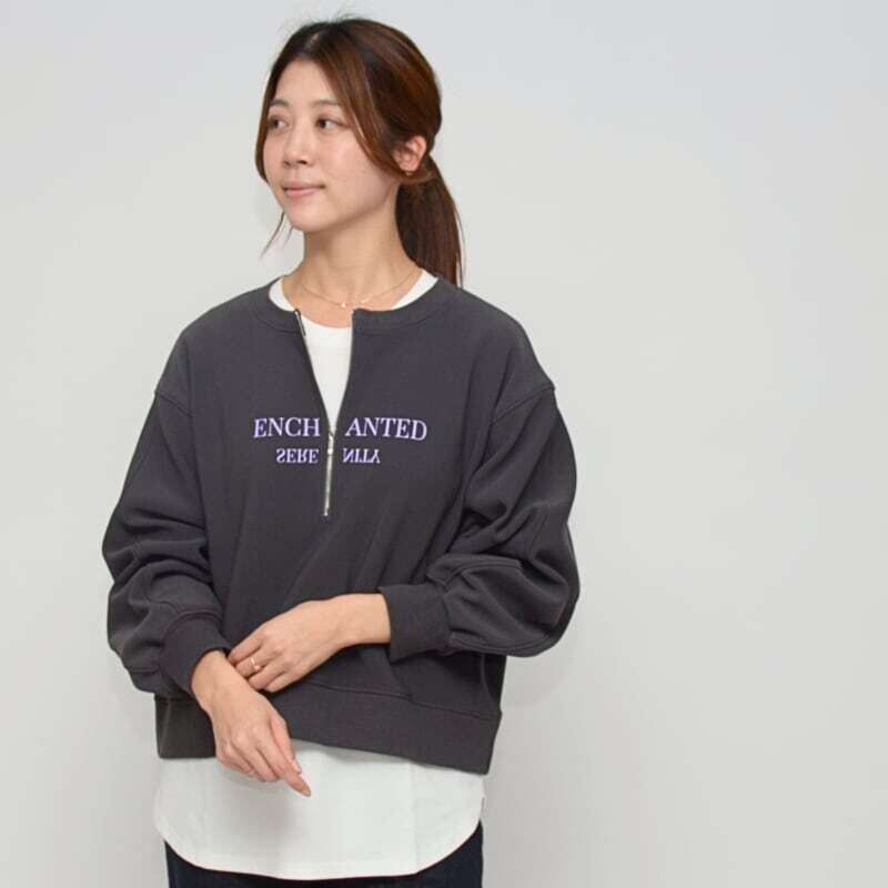 フロントネックにはハーフジップデザインを採用し、着こなしに抜け感をプラス。