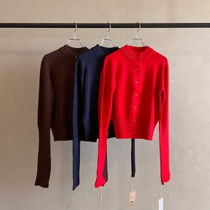 もっちりとしたニット素材を使用したクルーネックニットカーディガンです。