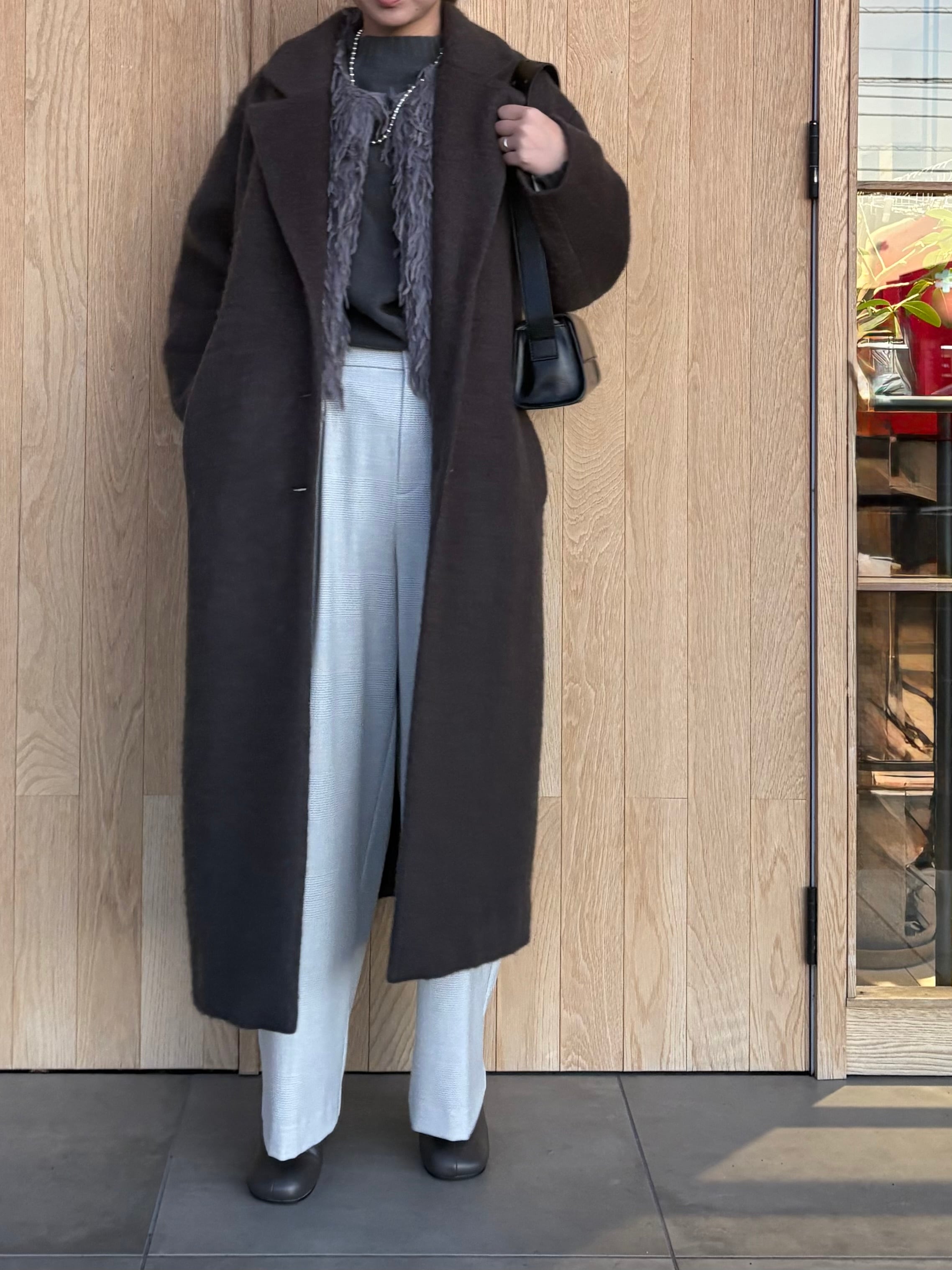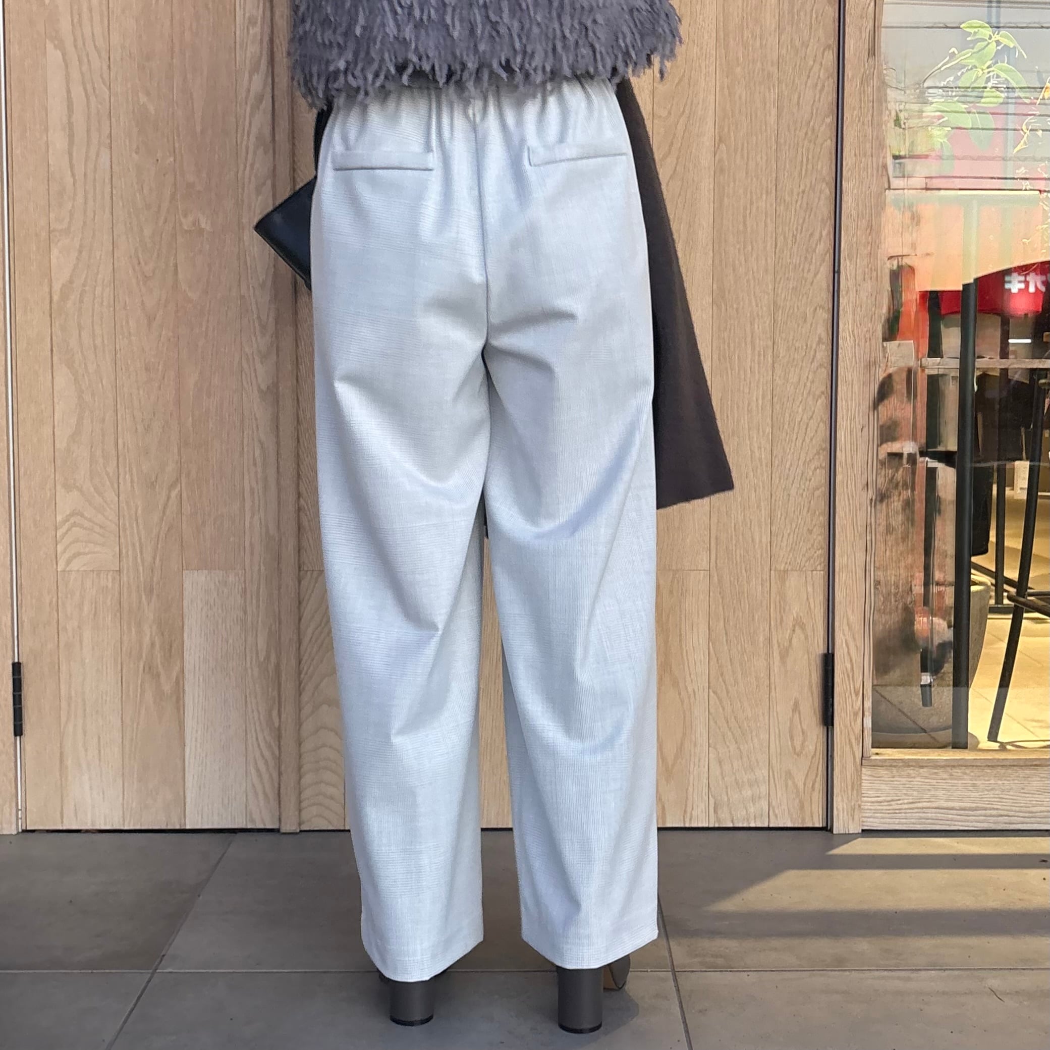 さらに、スッキリワイドシルエットが脚のラインをまっすぐに見せてくれます。