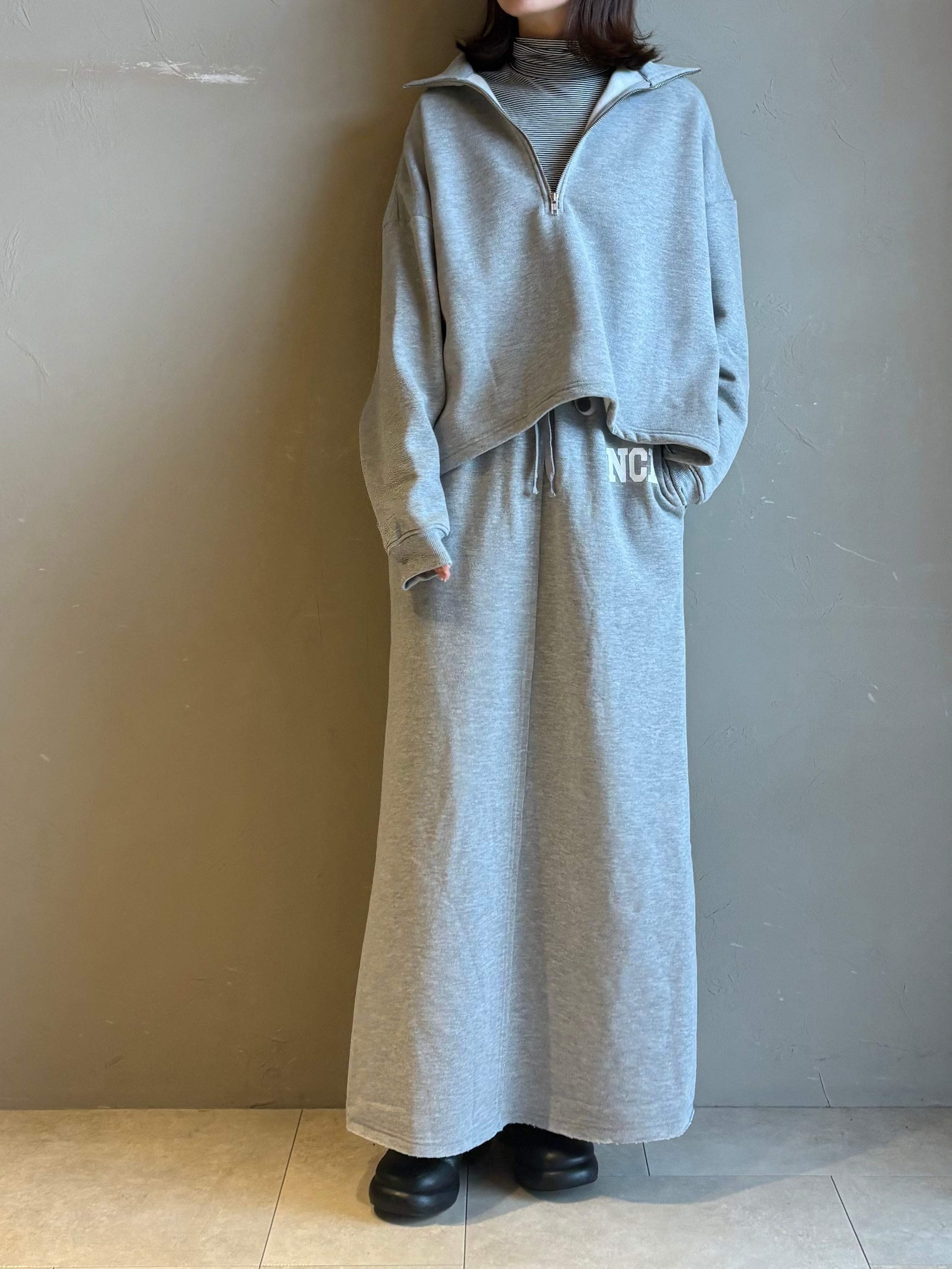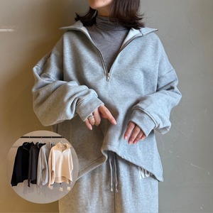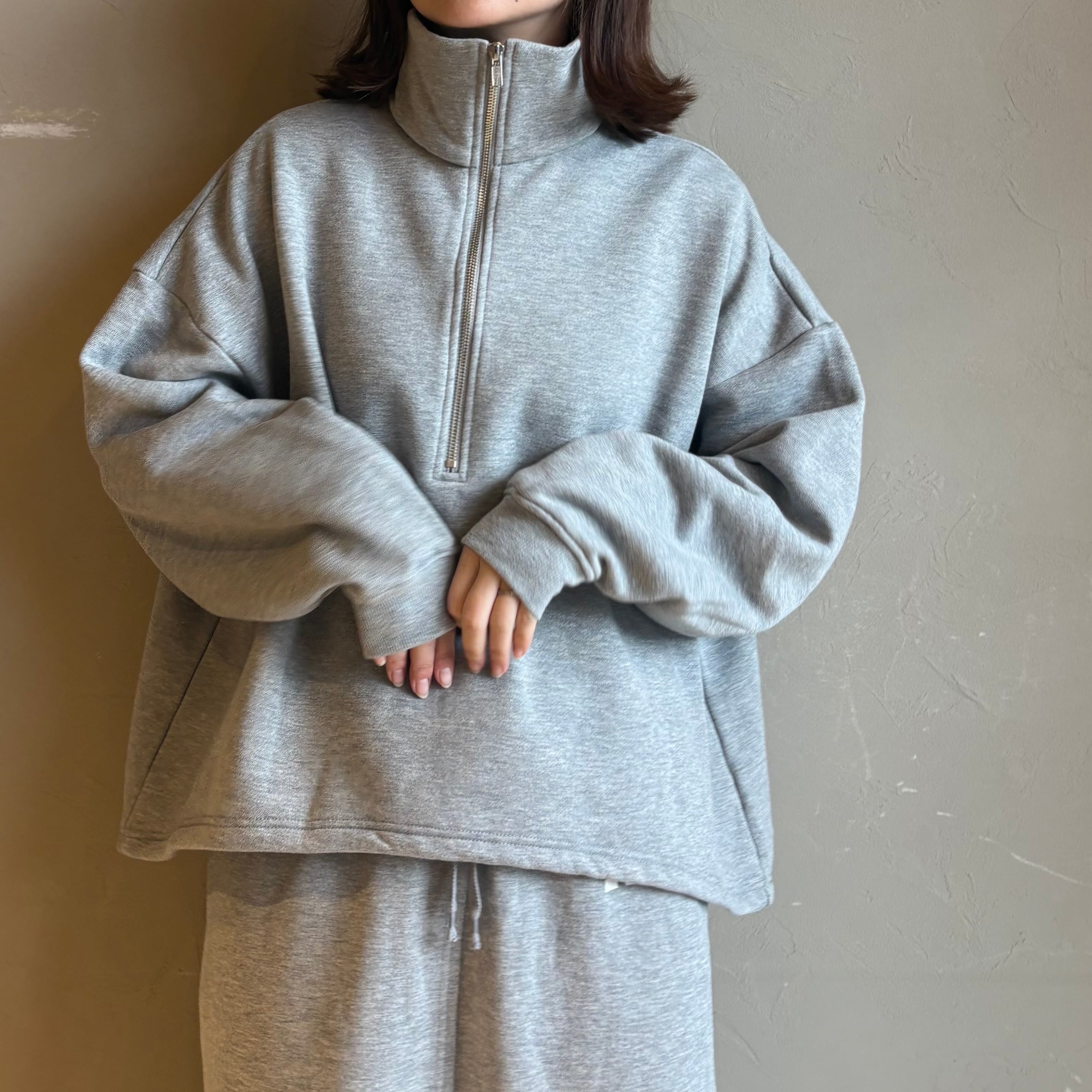 開けて抜け感、閉めて防寒できるハーフジップは小顔見えも叶えます。ゆったりオーバーサイズ×前後差ヘムで体型カバーしつつ、バランス良く細見え。