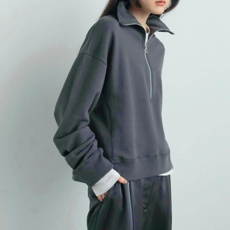 柔らかな裏毛素材を使用したハーフZIPトップス。