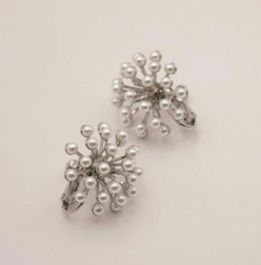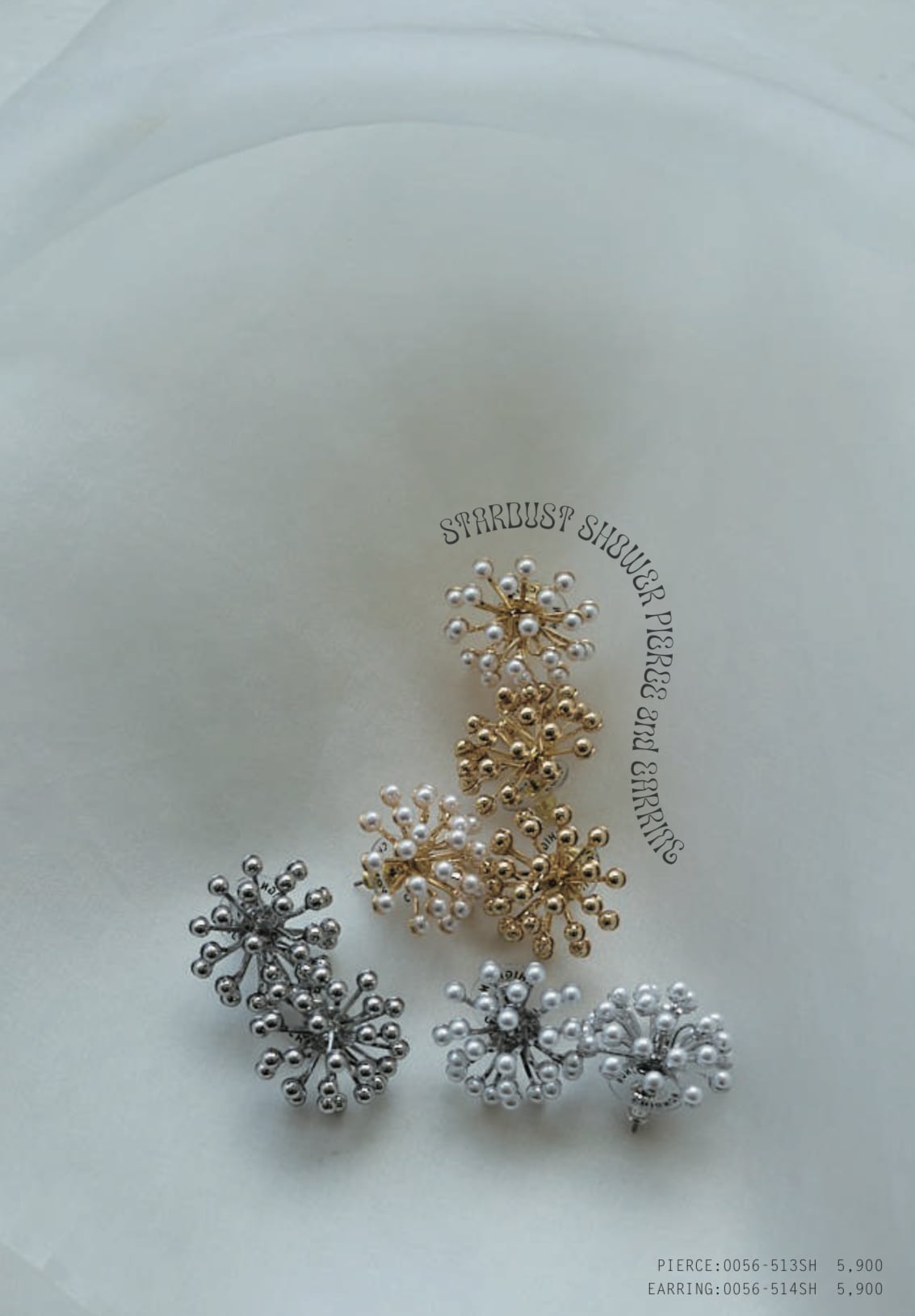 シャワーのように立体的に散らばったパールが印象的なデザインピアスは付けるだけで耳元がぐっと華やかな印象に。少し大ぶりな存在感のあるデザインですが、パールとパールには隙間があるので見た目以上に軽く付けやすいピアスとなっております。いつものコーデにはもちろん、結婚式やパーティーなどのオケージョンシーンにもぴったりなアイテムとなっております。背面には「CHIGNON」の刻印入り。