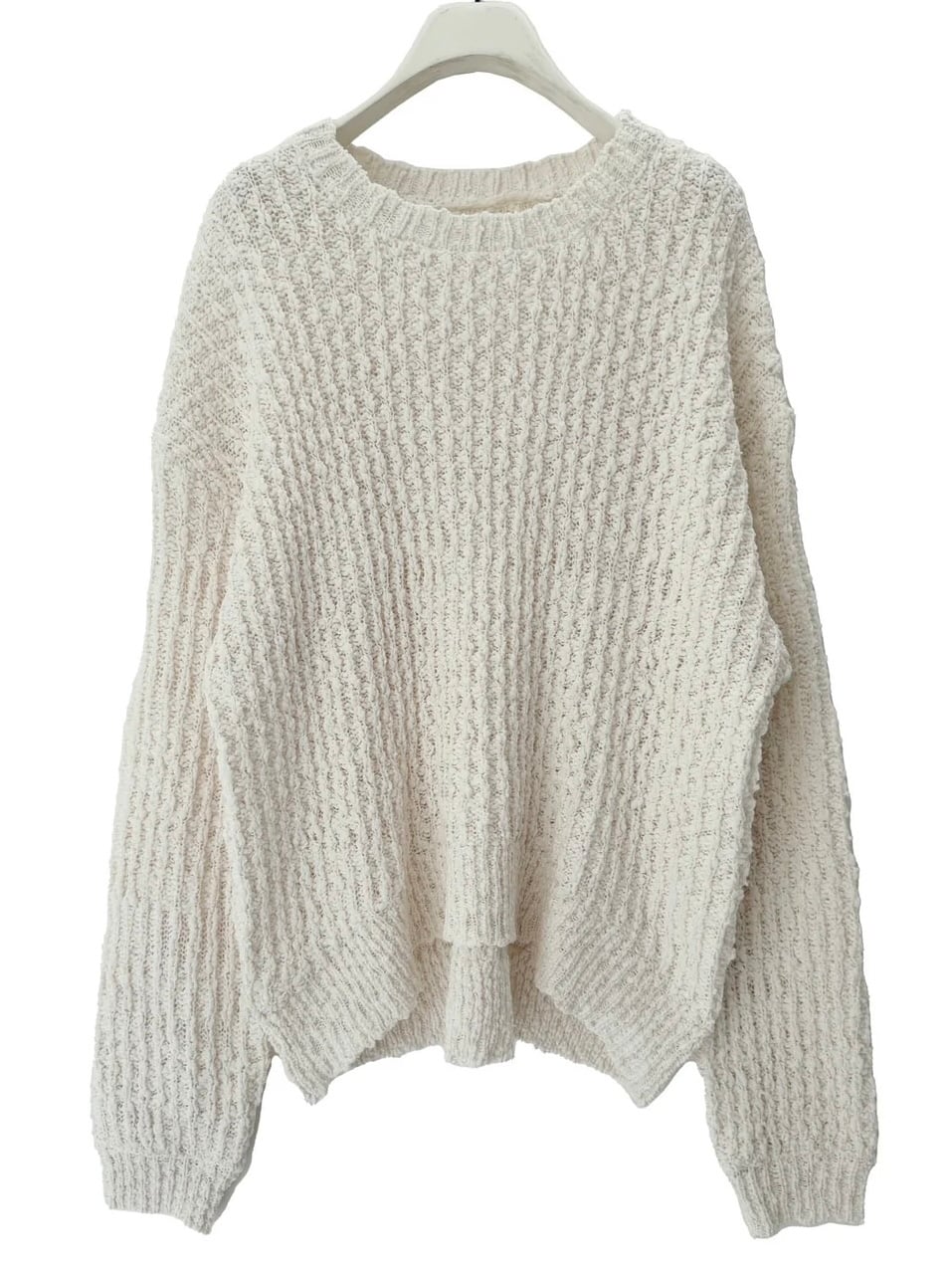 3Gでざっくりと編みあげたルーズ感と重い印象にしない絶妙な丈がポイント。