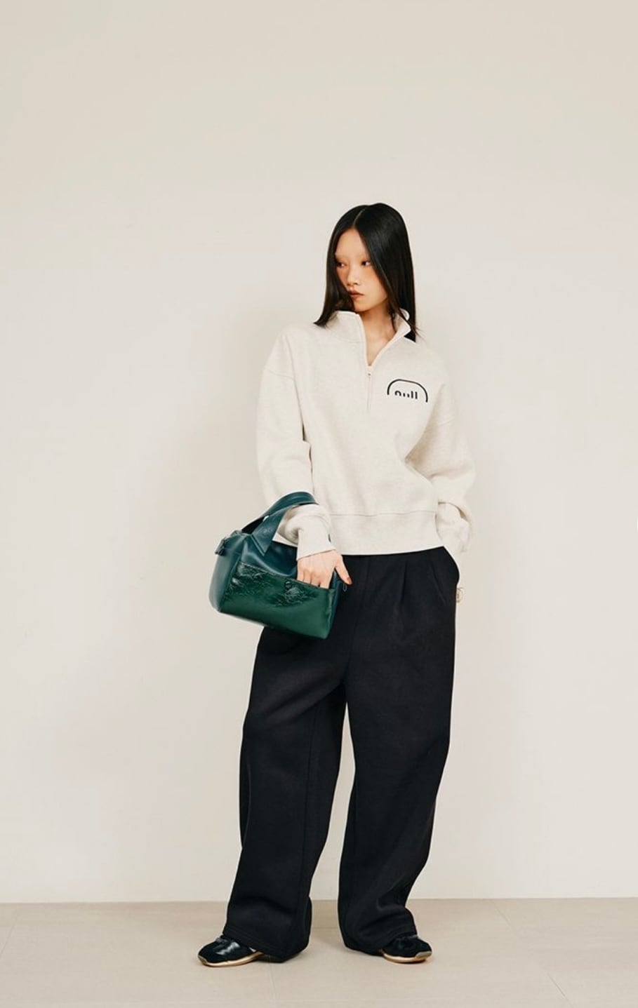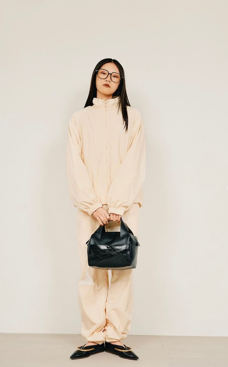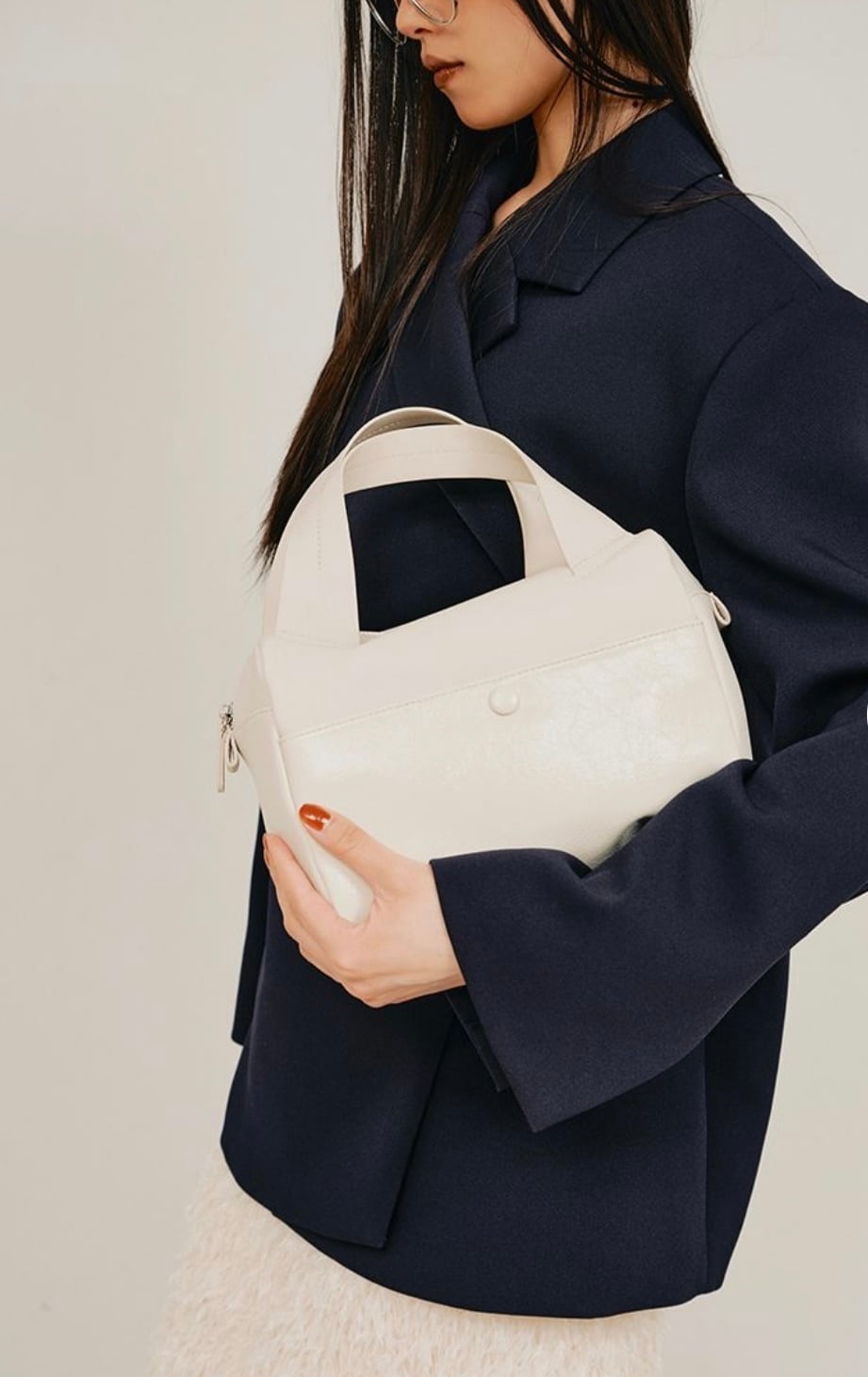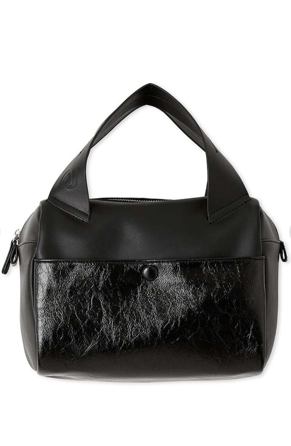 前ポケットは光沢感のあるシワ加工フェイクレザー素材。