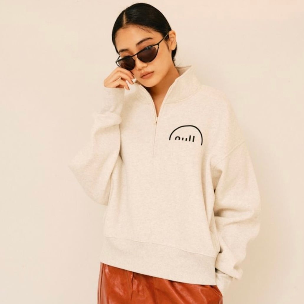 胸元のロゴがさりげないアクセントになって、ワントーンでも手抜きに見えません。ゆったりシルエットと柔らかなスウェット生地で、着心地はリラックス、見た目はすっきり。