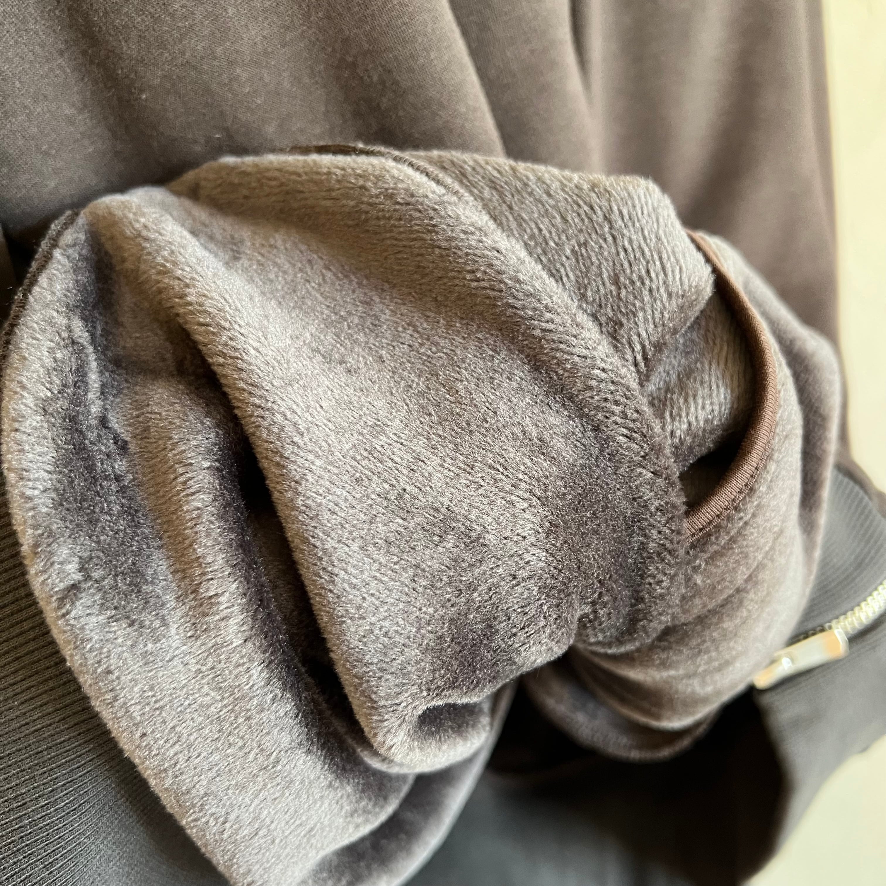 裏面がしっとりふかふかの毛布のような質感で抜群の肌触り。ストレッチのきいたジャージ系の素材です。
