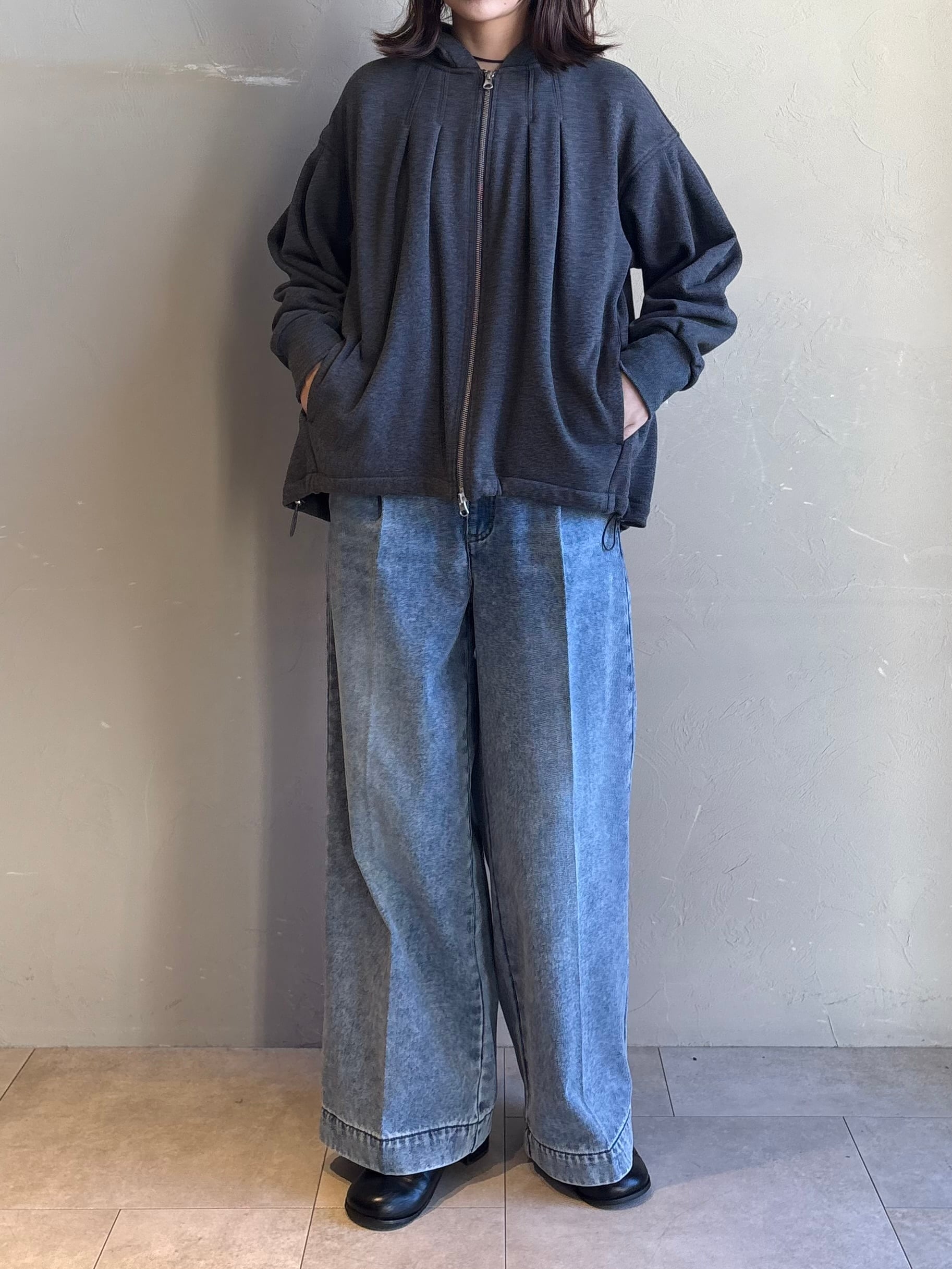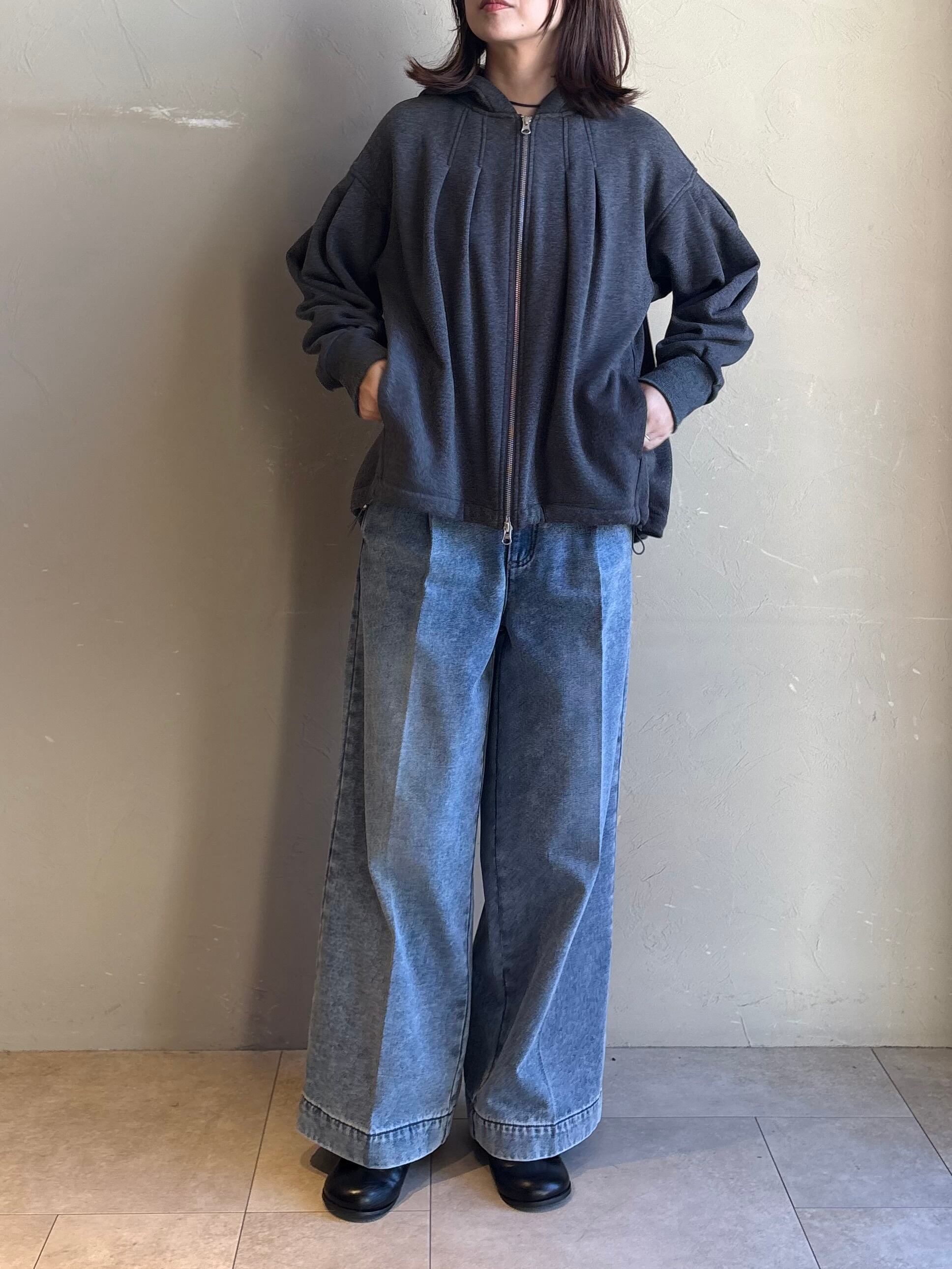 【 FONTANA GRANDE 】裏起毛タックデザインジップパーカー