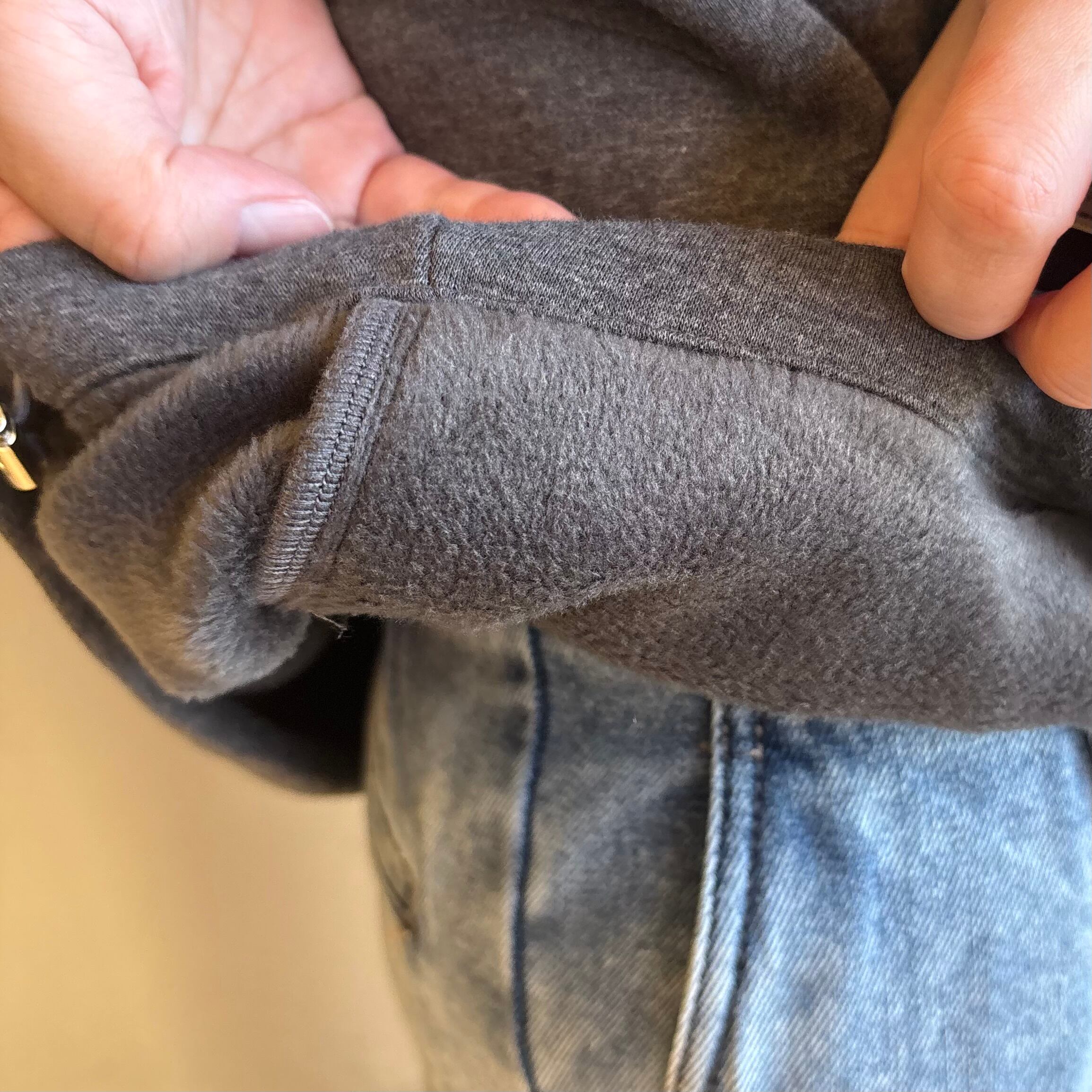 フロントのタックが立体感を作り、ゆったりシルエットでもすっきり見え。ふわっと暖かな裏起毛で、朝晩の冷え込みや移動の日も安心です。