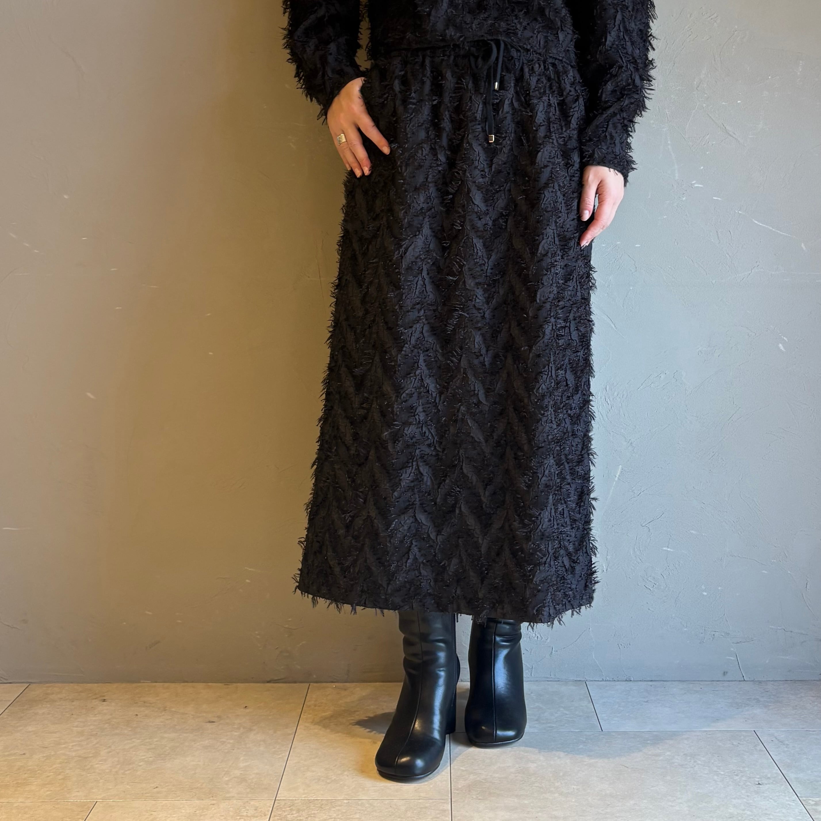 華やかなフリンジジャガードがポイントのロング丈スカート。
