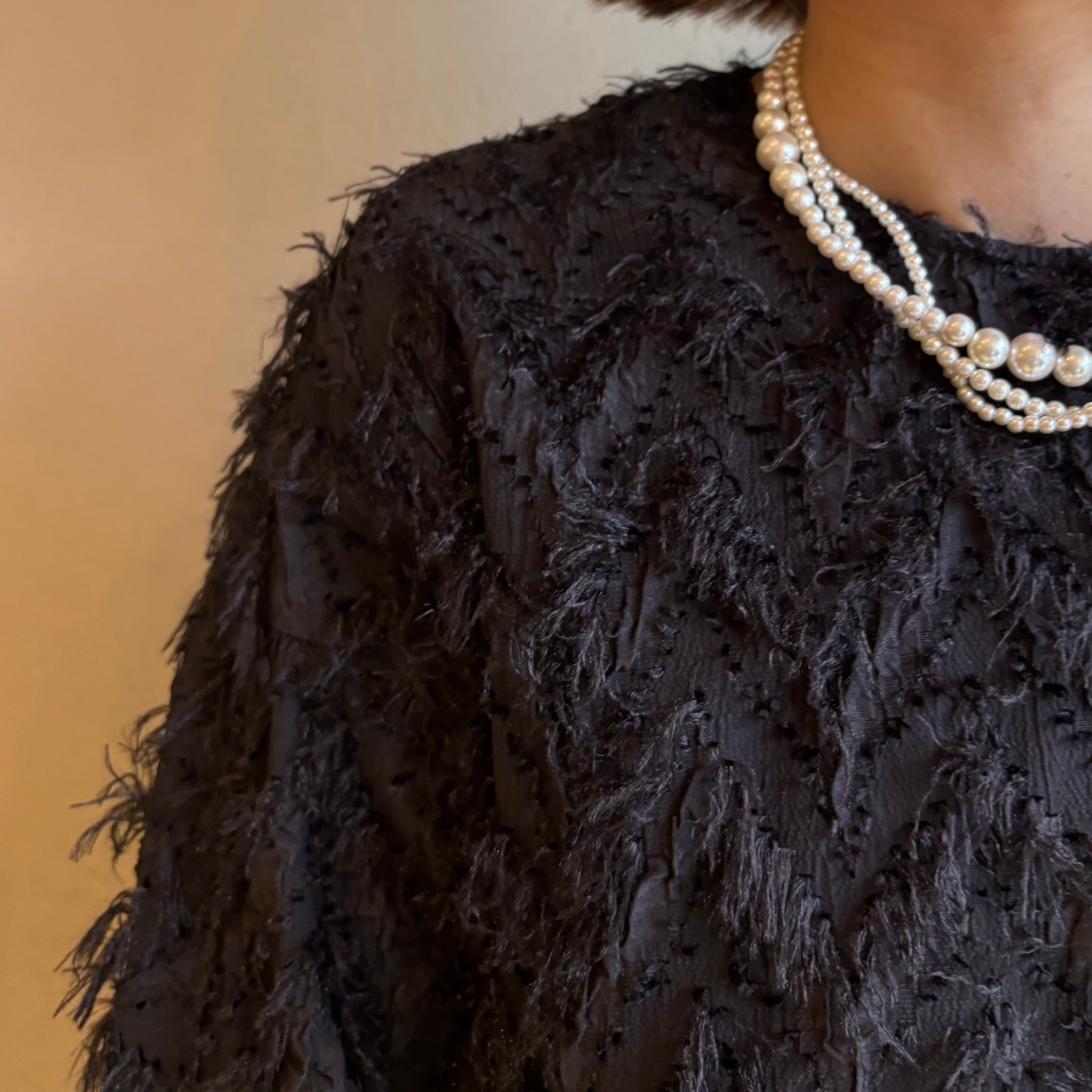 クロップド丈のコンパクトなシルエットで、上品で存在感のあるデザインです。