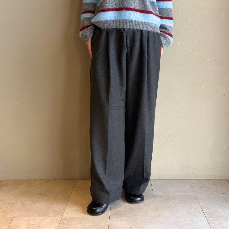 ウール混タックワイドパンツ