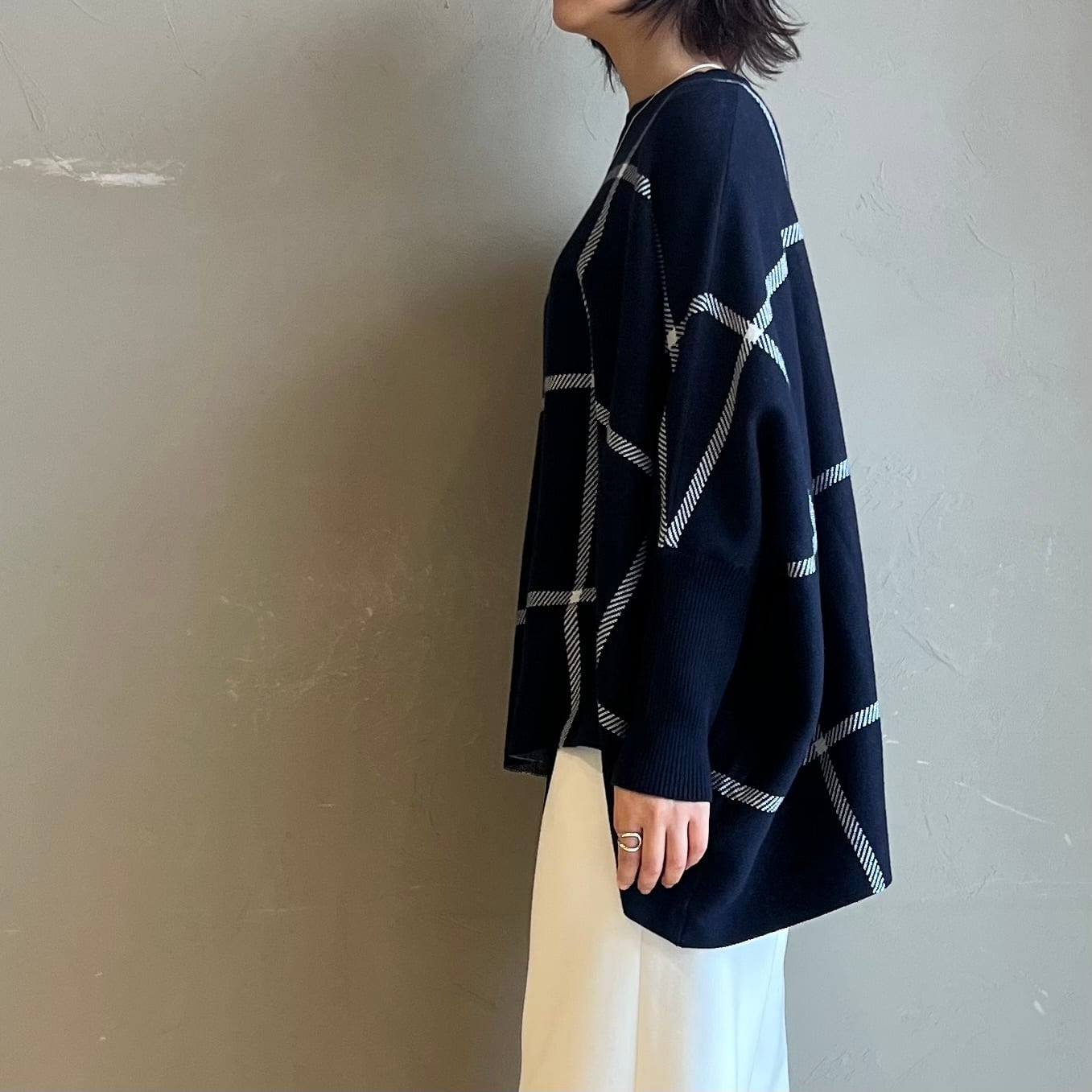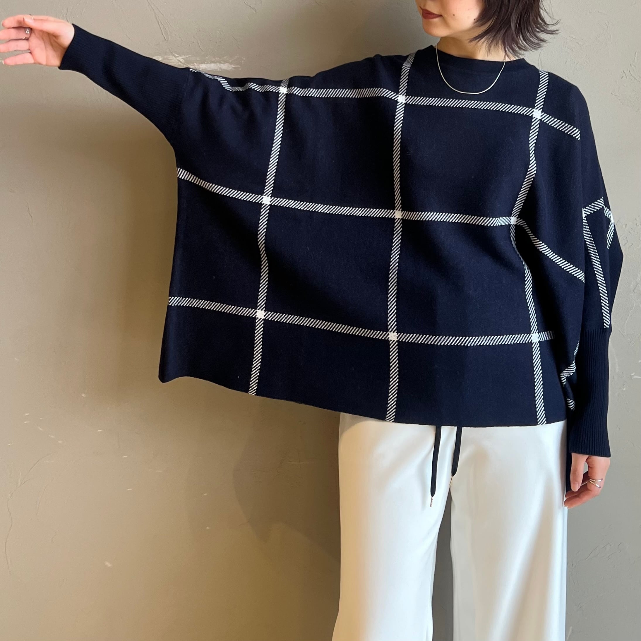 【 CYNICAL 】チェック柄コットンニットワイドプルオーバー