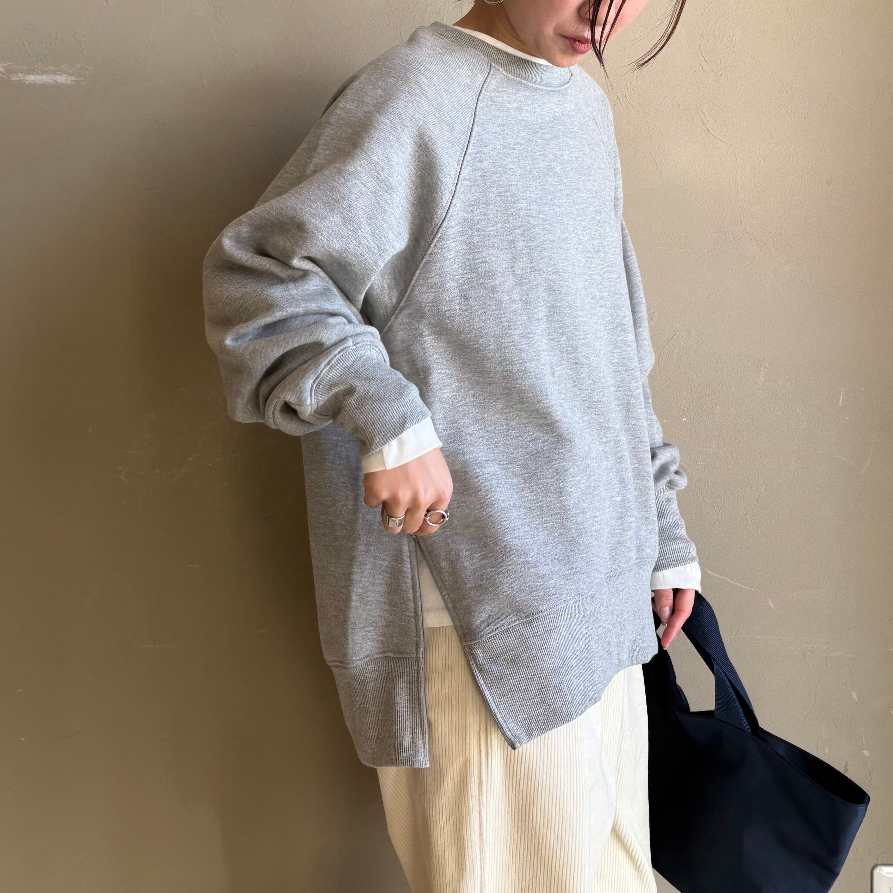 ラグラン×ゆるシルエットが肩まわりを華奢見せ、前後差ヘムで腰回りもすっきり。両サイドのファスナーを開けばレイヤードが映え、スカートにもパンツにも◎