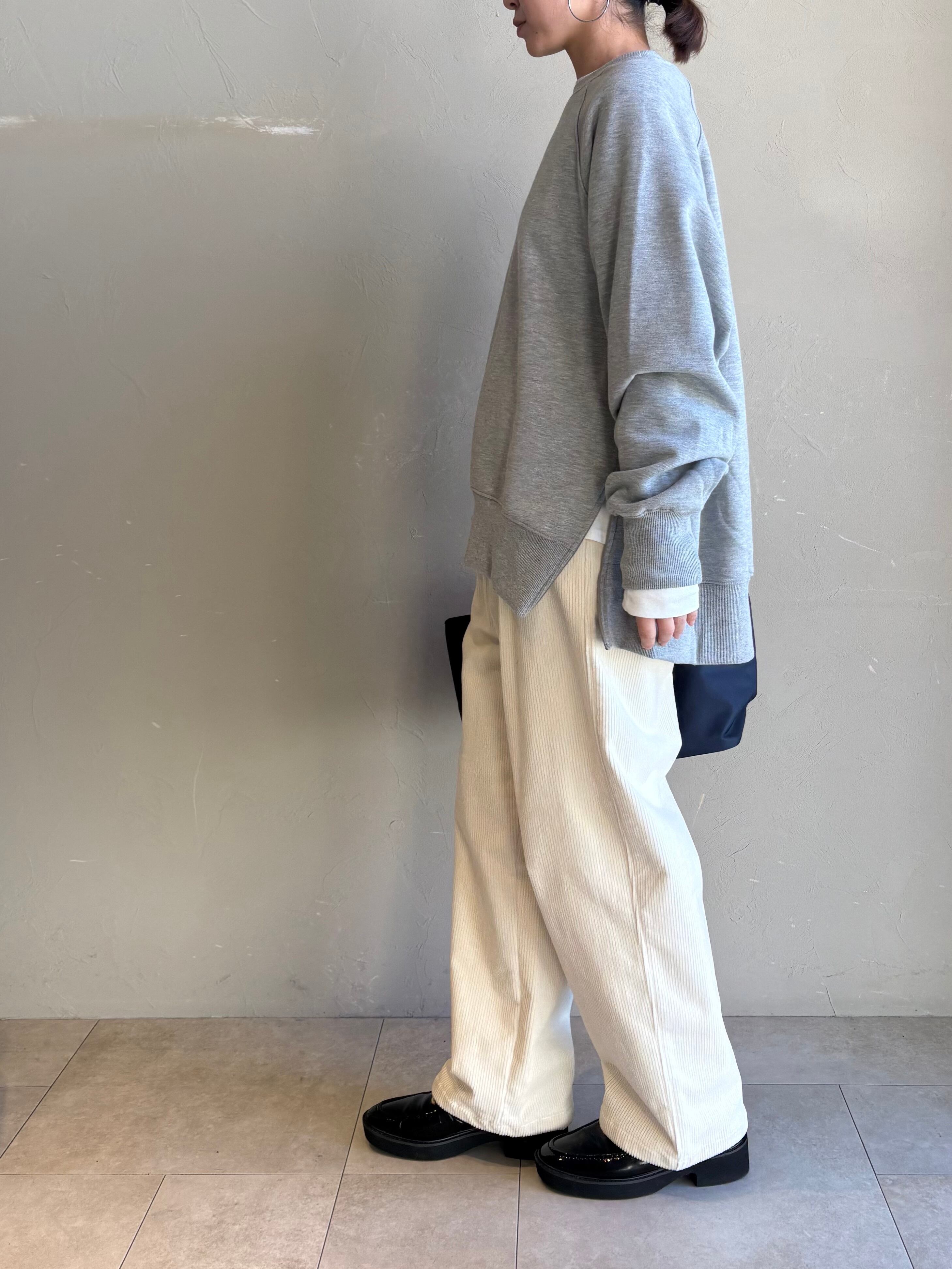 【CLOCHE】裏起毛サイドジップスウェットは、ふんわり起毛で一日じゅうあったか。
