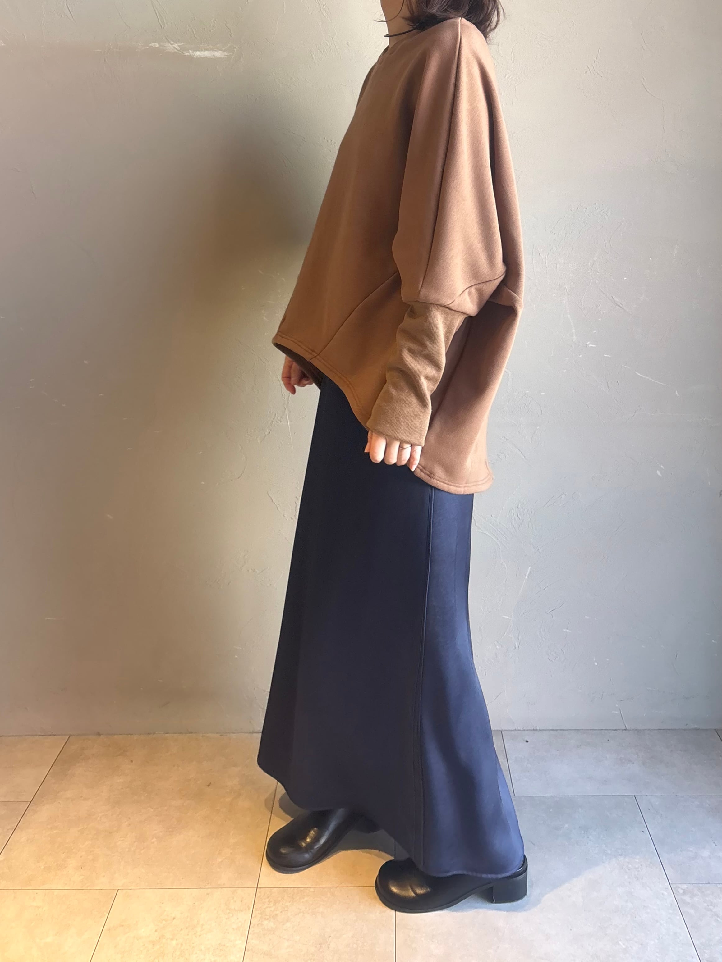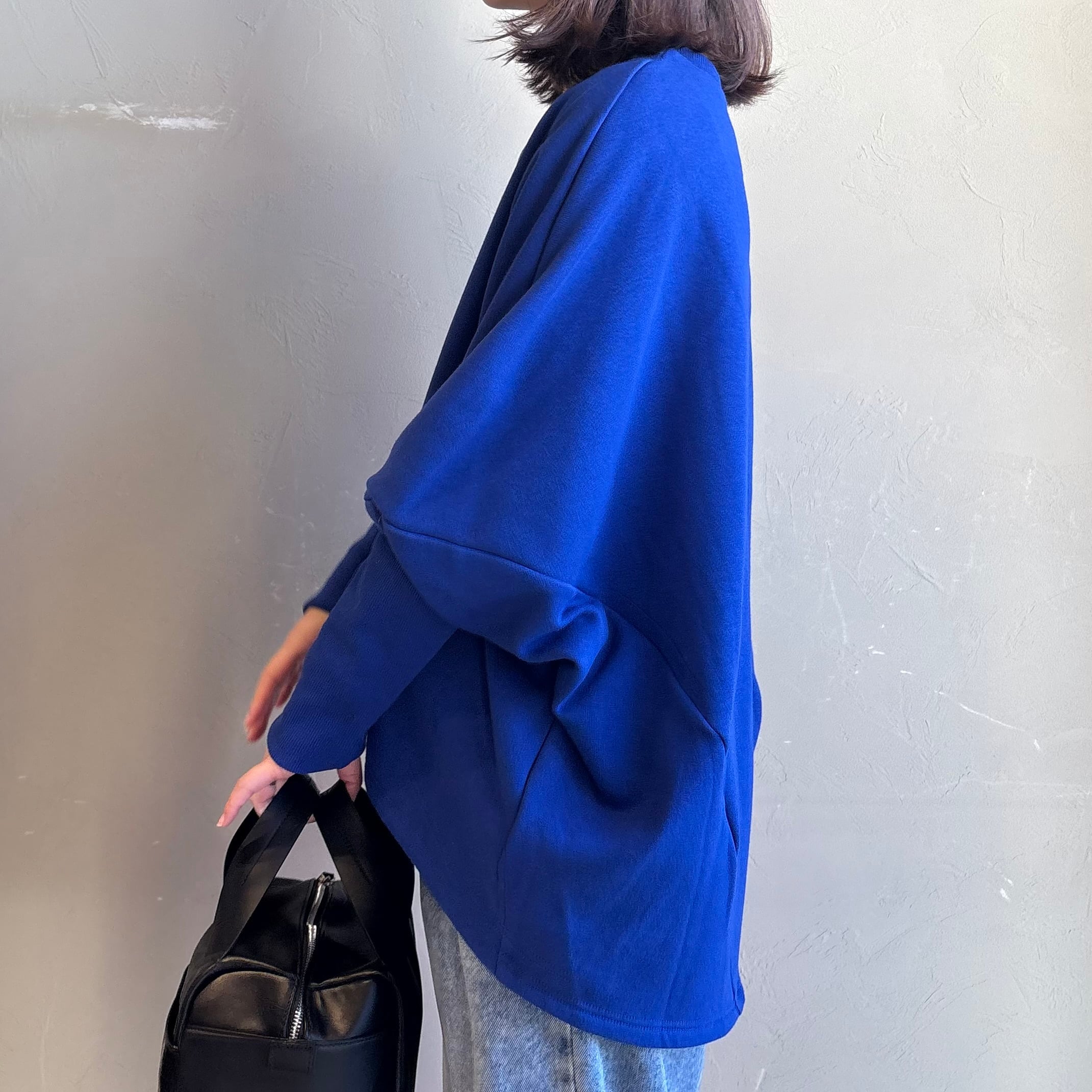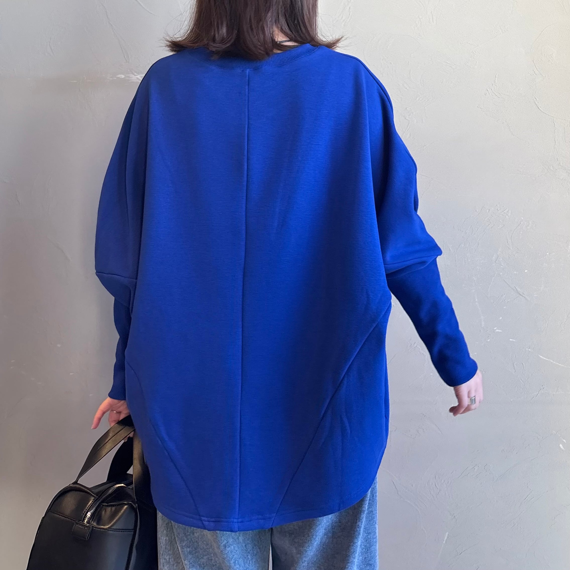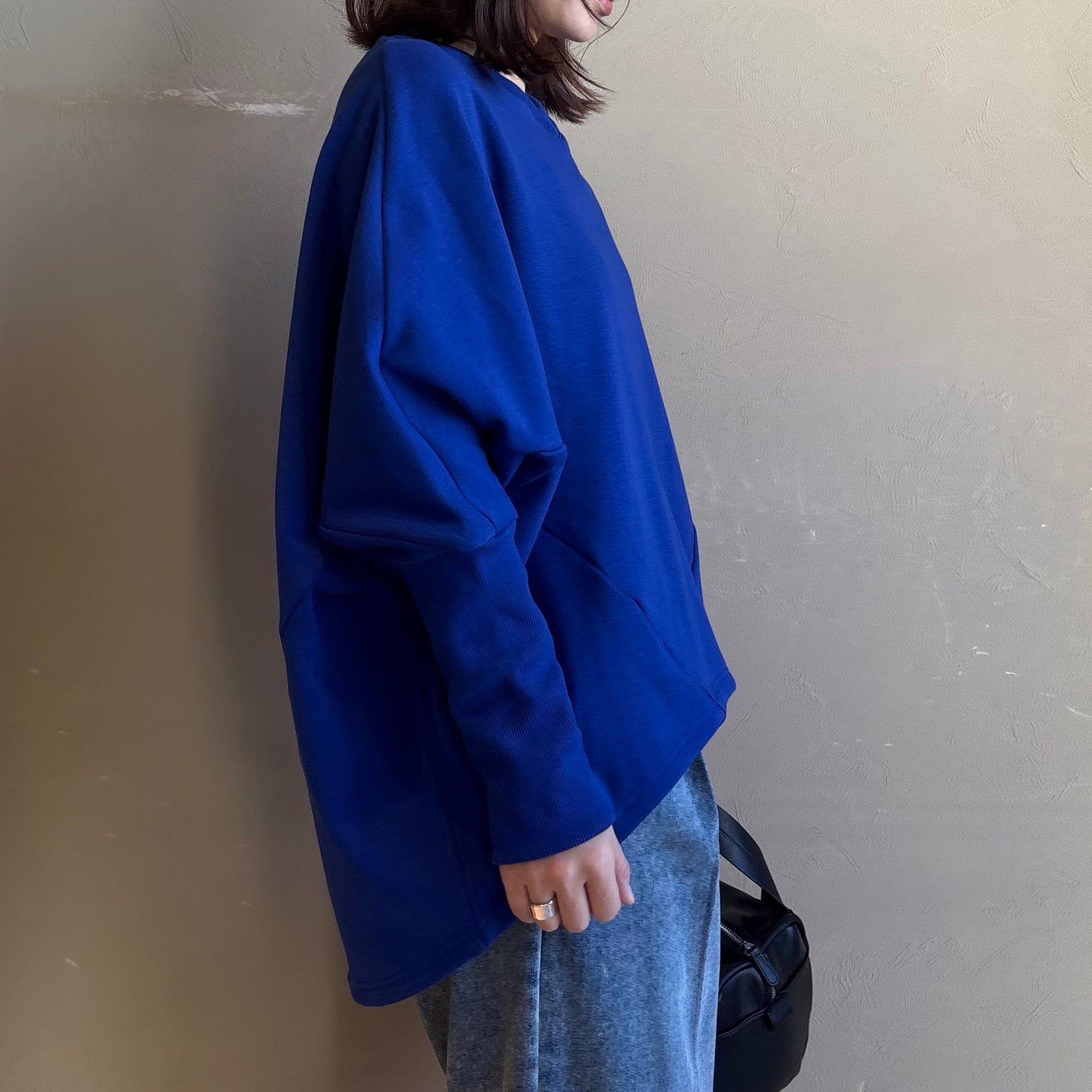 肩まわりが楽なドルマンシルエットで、着るだけでこなれた立体感に。前後差のある丸みヘムが腰回りをやさしくカバーし、デニムもスラックスもすっきり見せます。
